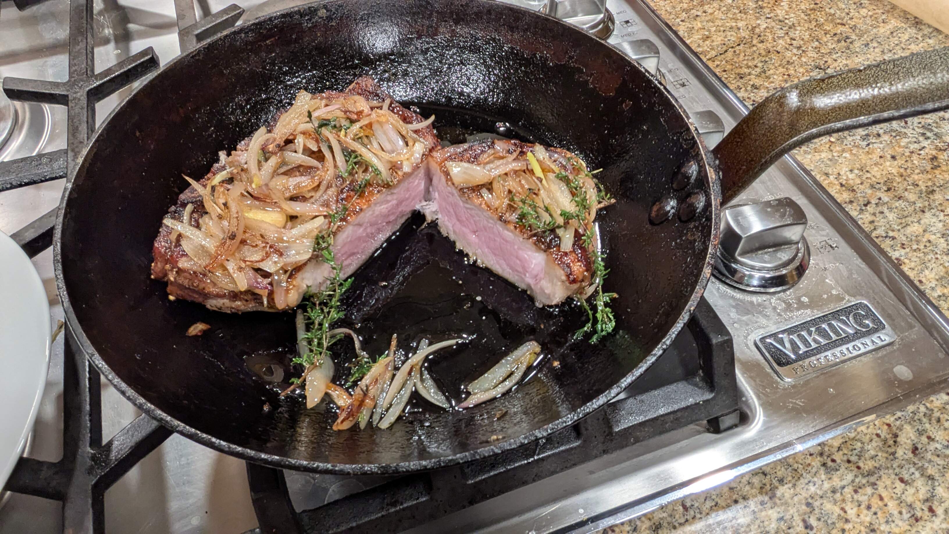 ” pork chop “reverse seared” medium rare a la