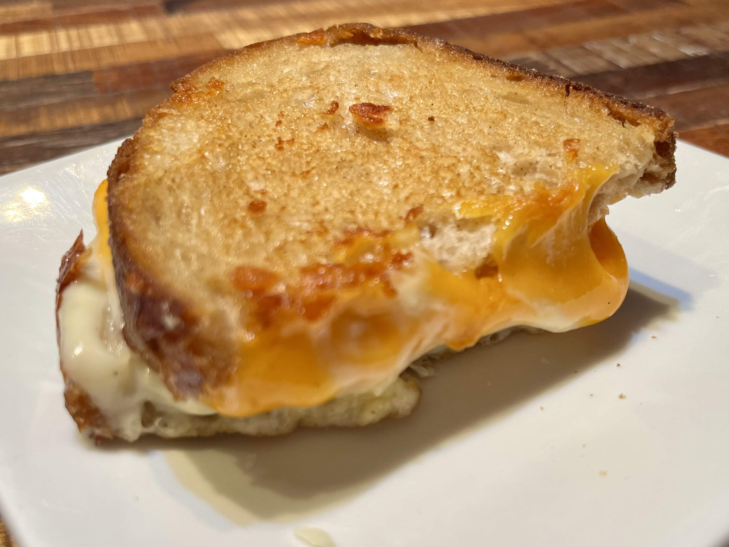 I didn’t eat anything at the place bc $$$, so when we got home my PIC made me a delectable grilled cheese with mozzarell’, cheddar & Havarti that I obliterated in under 5 minutes