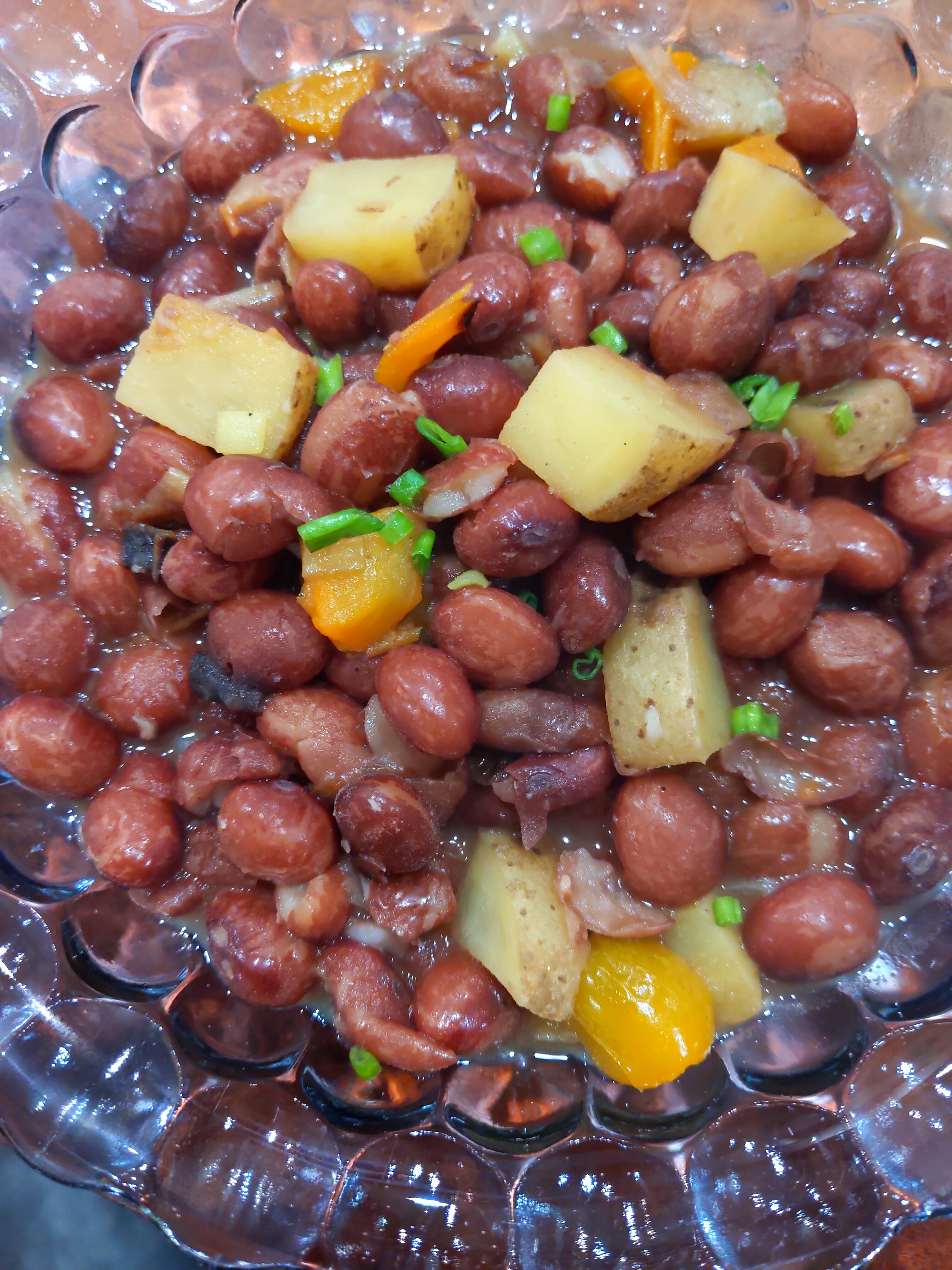 Good mother stallard beans with onions, scallions and yellow pepper, along with a potato and some habanero I froze last growing season. Was served topped with some taco meat and yogurt. PIC had it in a tortilla with sour cream.