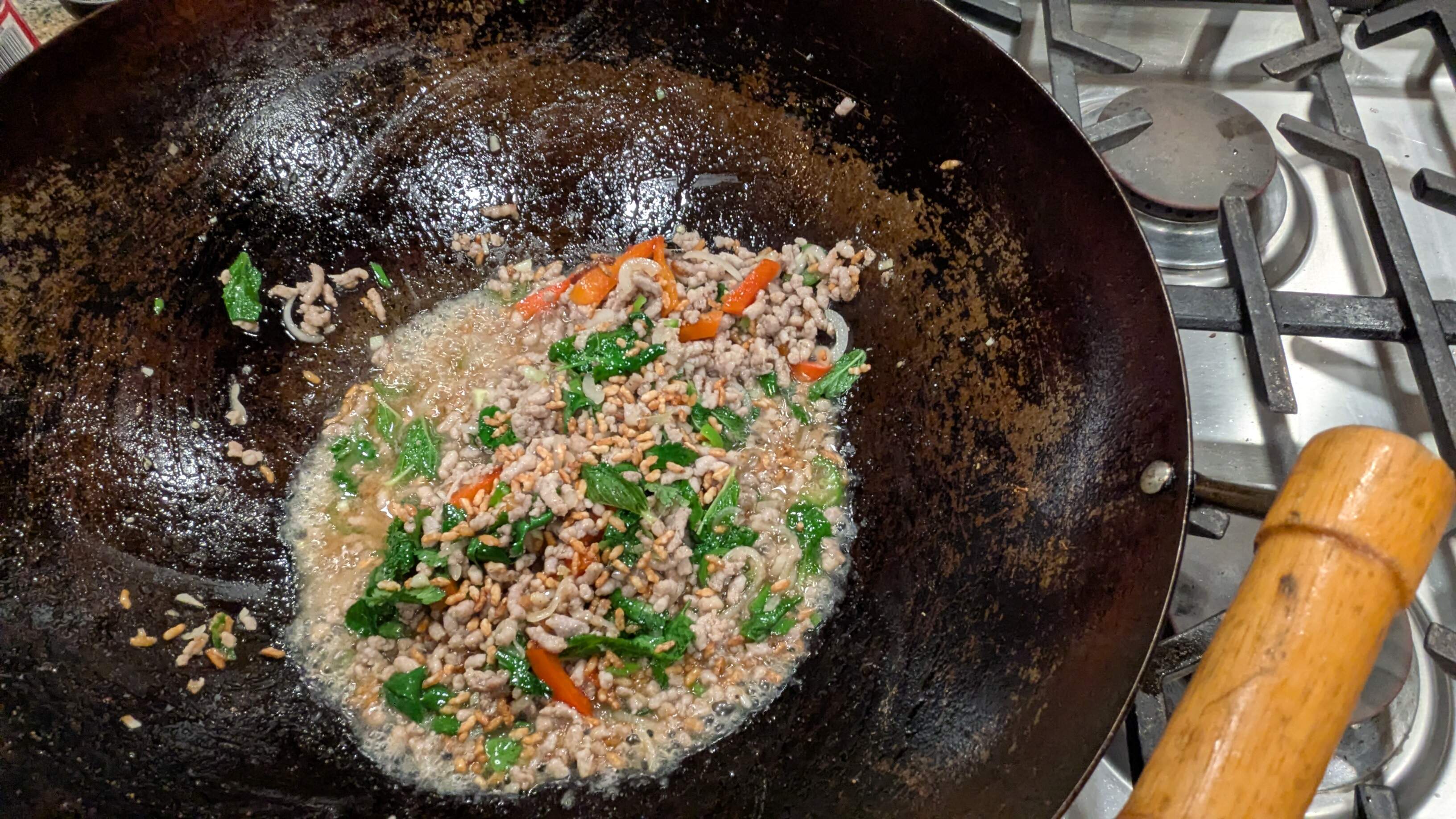I decided to make larb on a cabbage salad from the second heritage pork chop.It was a bit much.