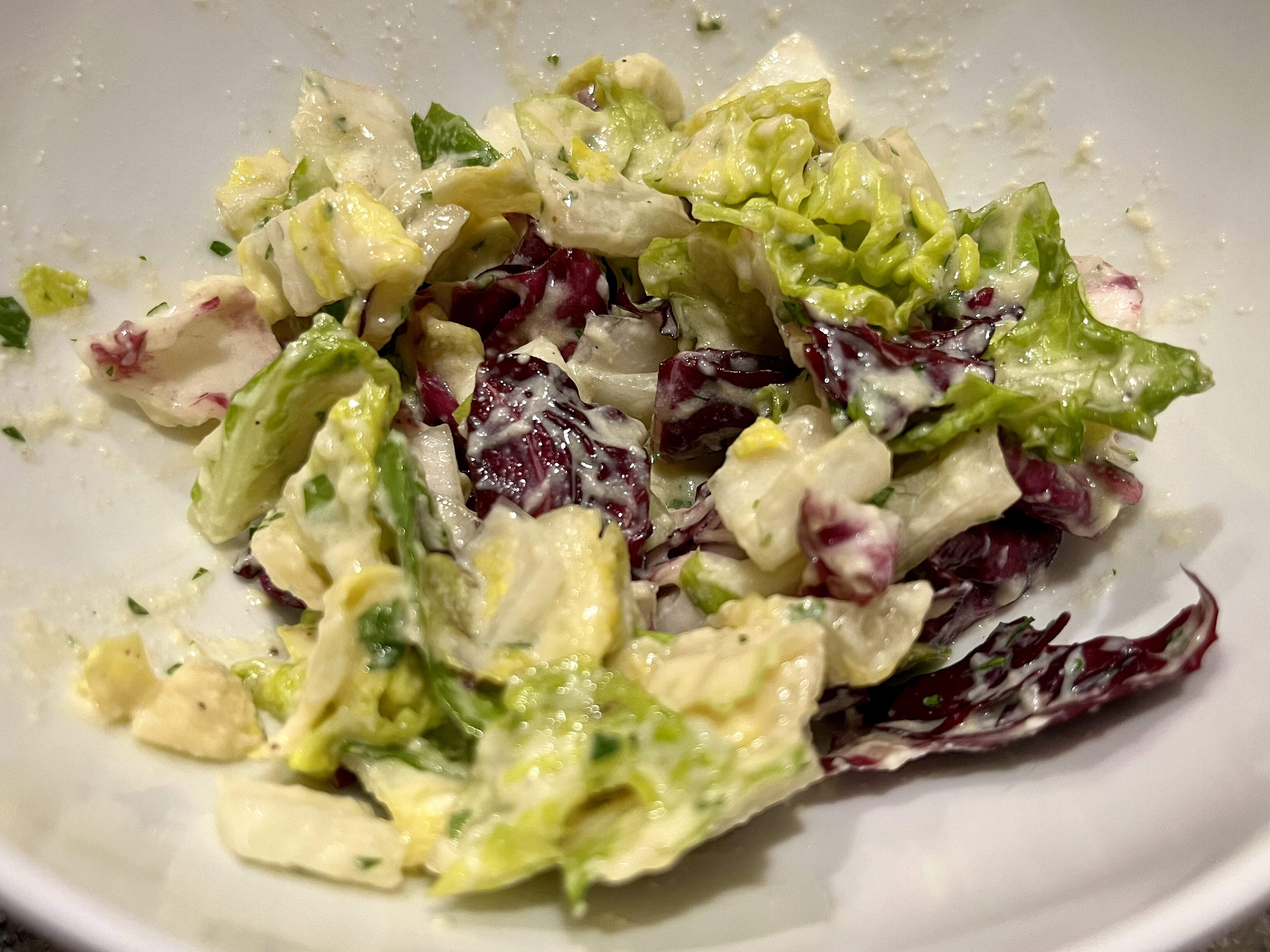 A bit of an odyssey around town today tryna (unsuccessfully) find neri goma for this extra speshul salad dressing I’d been meaning to make for a while now, and hitting up several other stores — Wegmans for celebration ham for my boo, Aldi for super-juicy, gigantic, cheap-ass lemons and perfectly unripe avocados, Giant for Belgian endive & radicchio for the salad, then my buddy’s house for a dozen fresh eggs. 1.5 hours roundtrip! ![]()