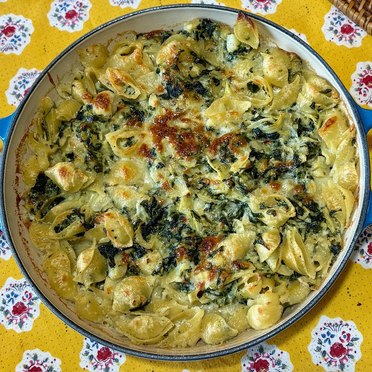 NYT’s spinach and artichoke pasta bake (gift link). An early-spring household favorite.