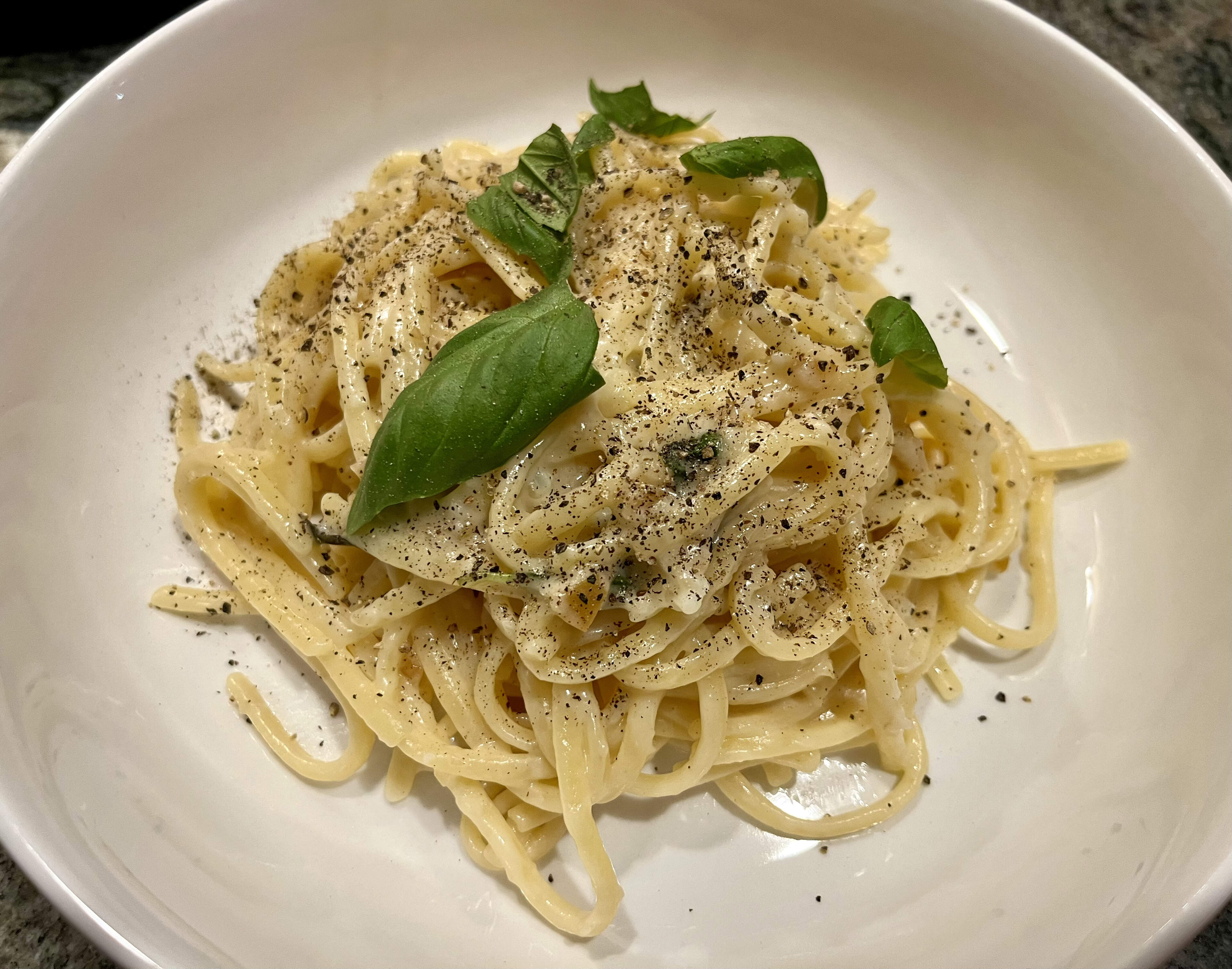 I’ll never say no to pasta, but this didn’t rock me, TBH. We also didn’t think the basil at the end added all that much ![]()
