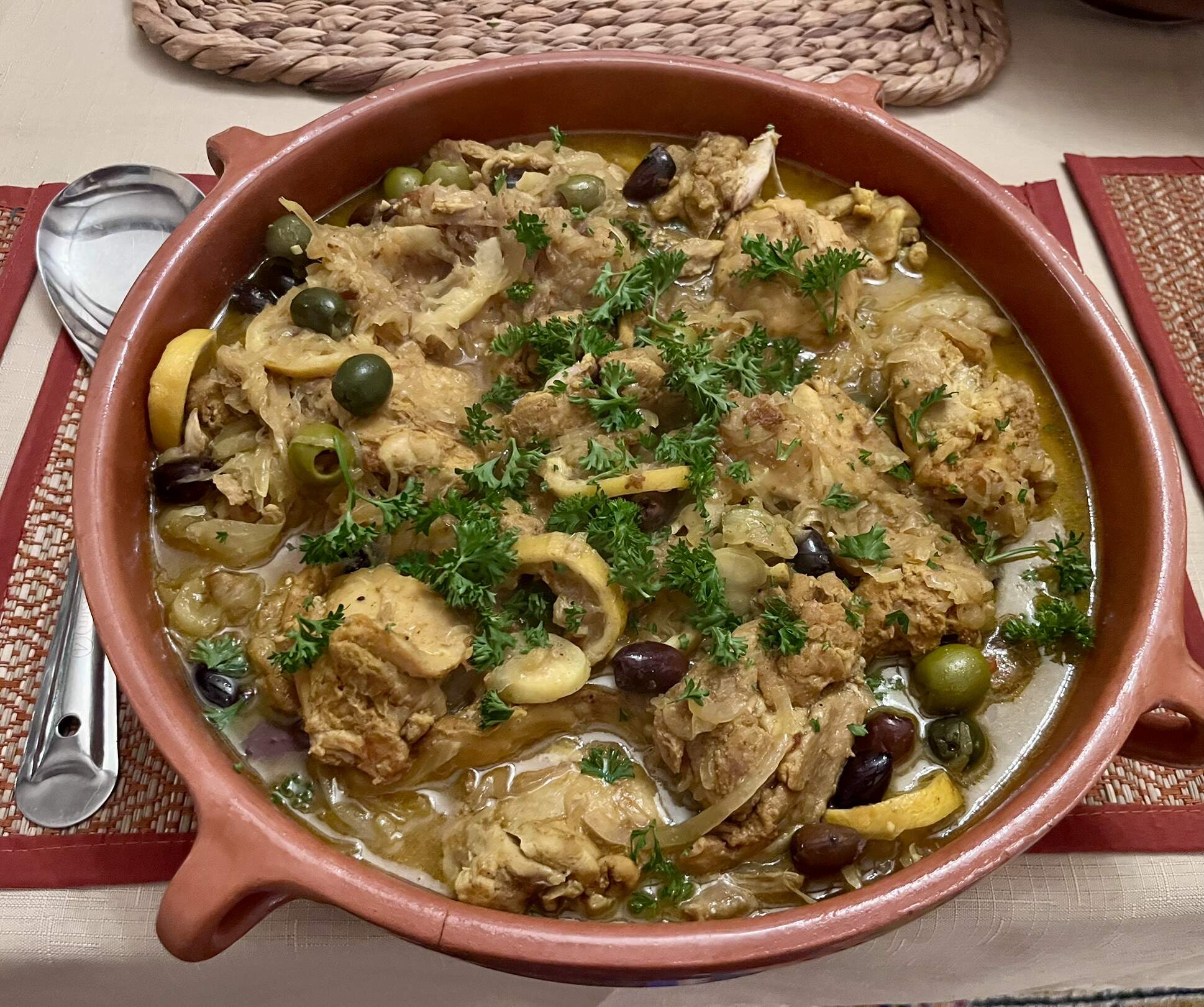 braised chicken with lemon and olives,