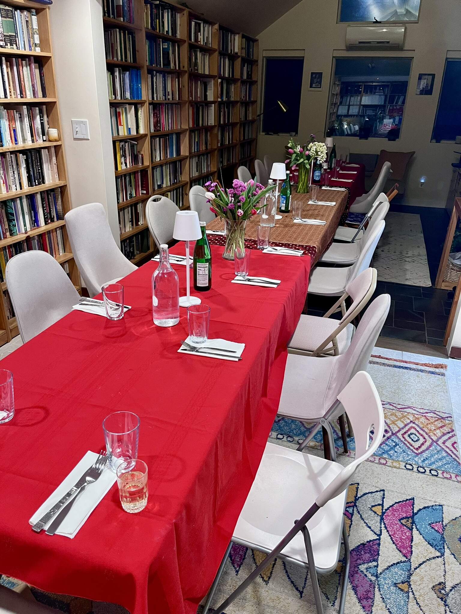 before the buffet table bursting beneath a Moroccan-themed buffet and dining room