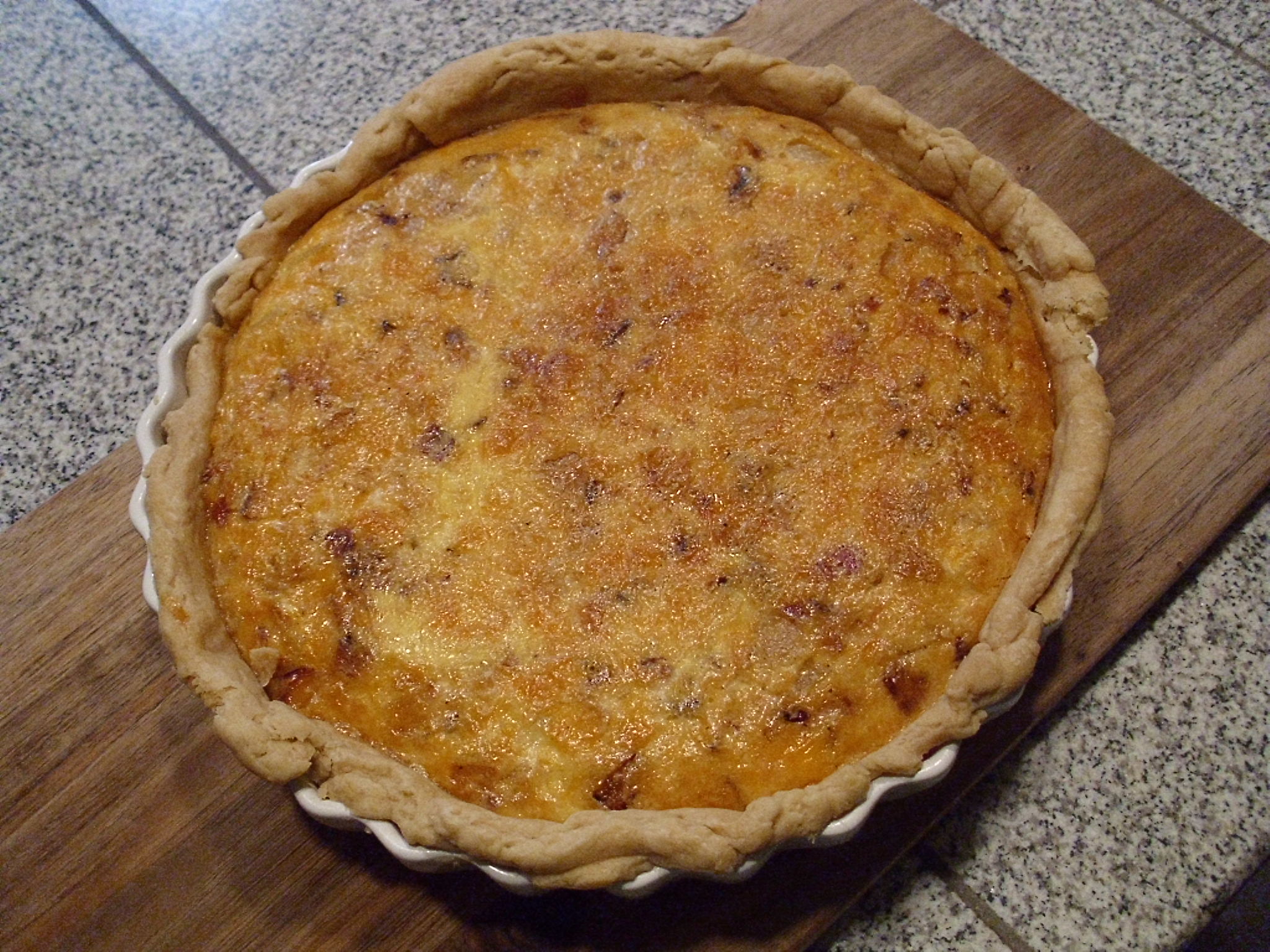 I used the pack of bacon my neighbor gave me for changing his light bulb, to make a Bacon & Onion Quiche. My crust went a little wonky on me, but it was still YUMMY!!