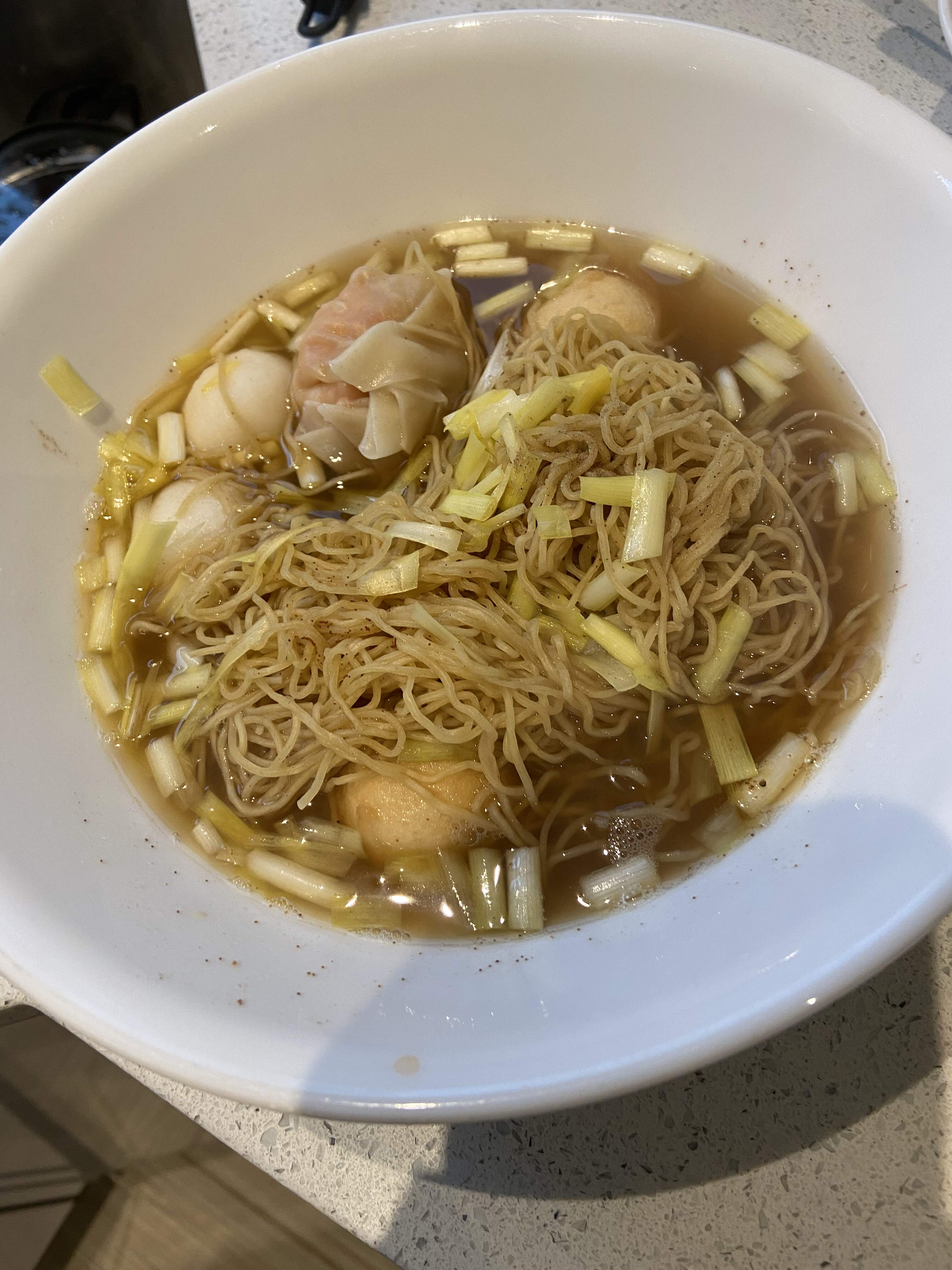 For dinner, I made myself another bowl of ’ as authentic as possible ’ Hong Kong style Won-Ton noodles! This time with added imported ’ Hong Kong Aberdeen style fish balls, ’ bought from a store inside of First Markham Place.