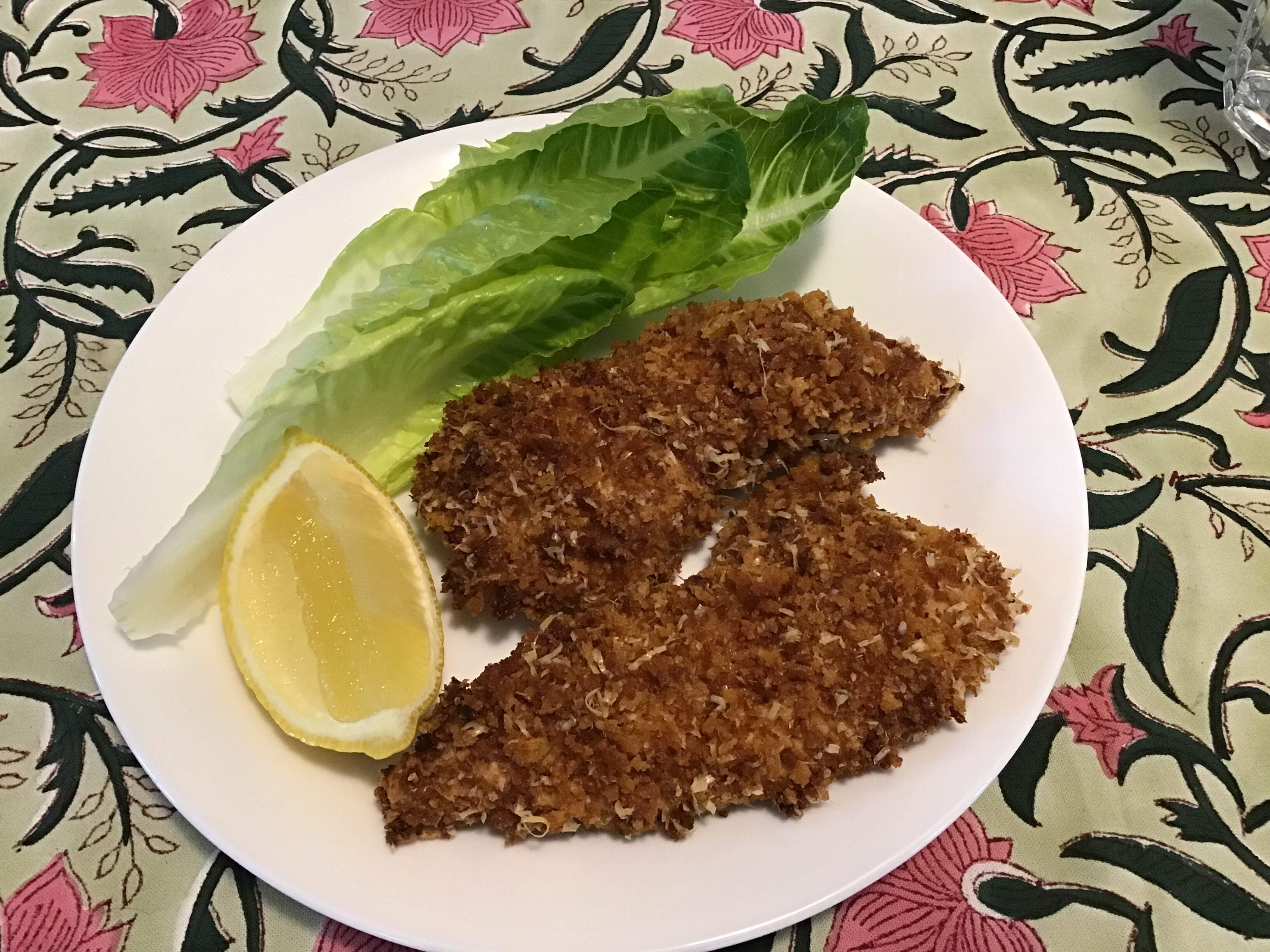 RecipeTin Eats truly crispy oven-baked chicken tenders (done in air fryer) with lettuce wraps and lemon. Easy, tasty, perfect for Friday night.