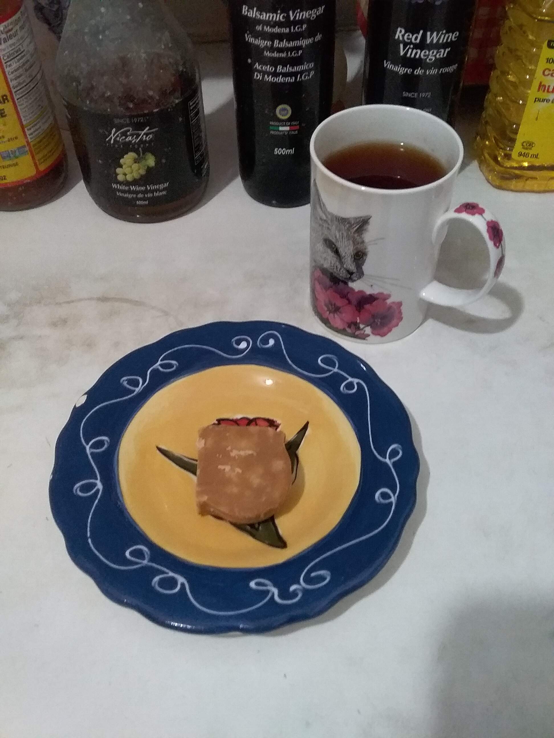My super-duper-late dinner was casa lingua “pizza,” id est a toasted slice of Aldi’s bistro bread with Havarti and Gouda melted on top, oregano, sliced shallot & Italian salami (also Aldi).