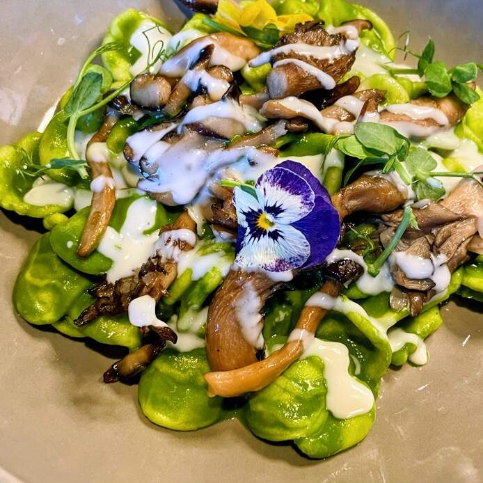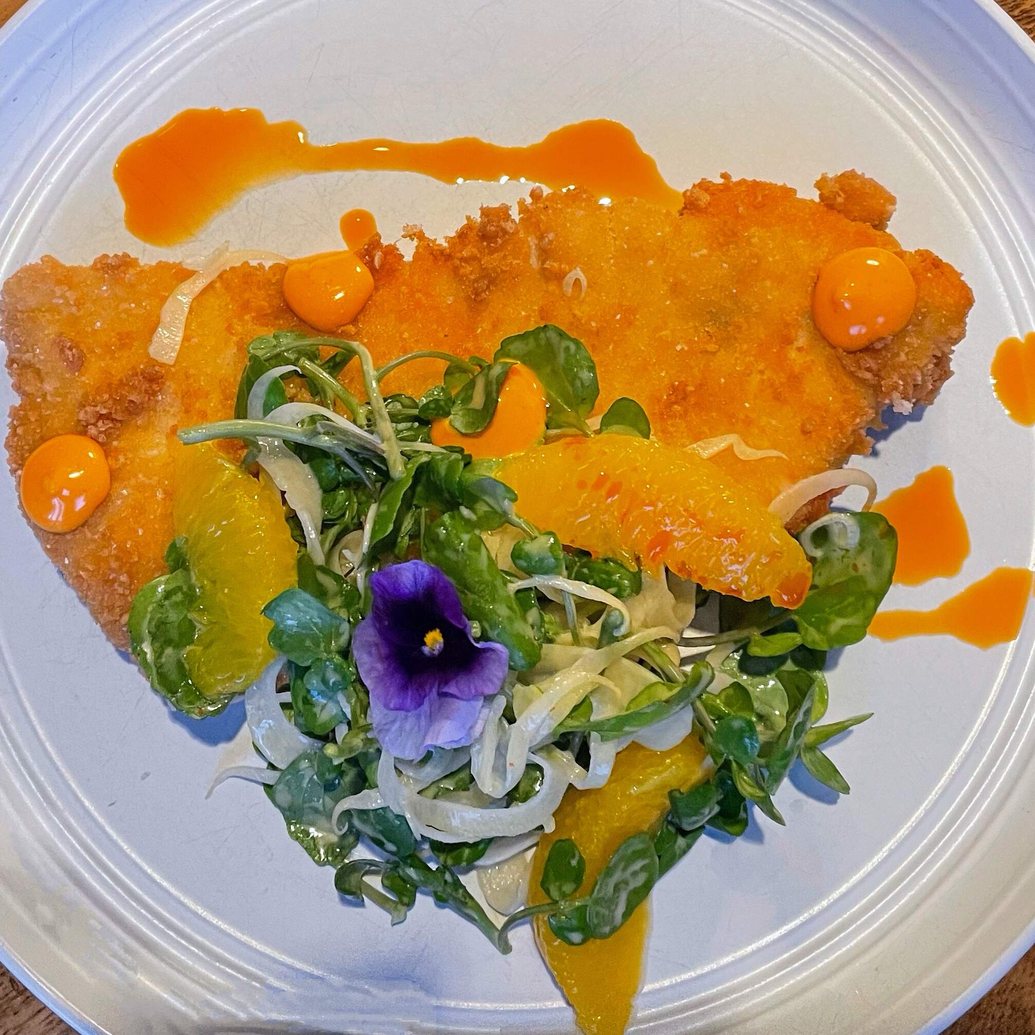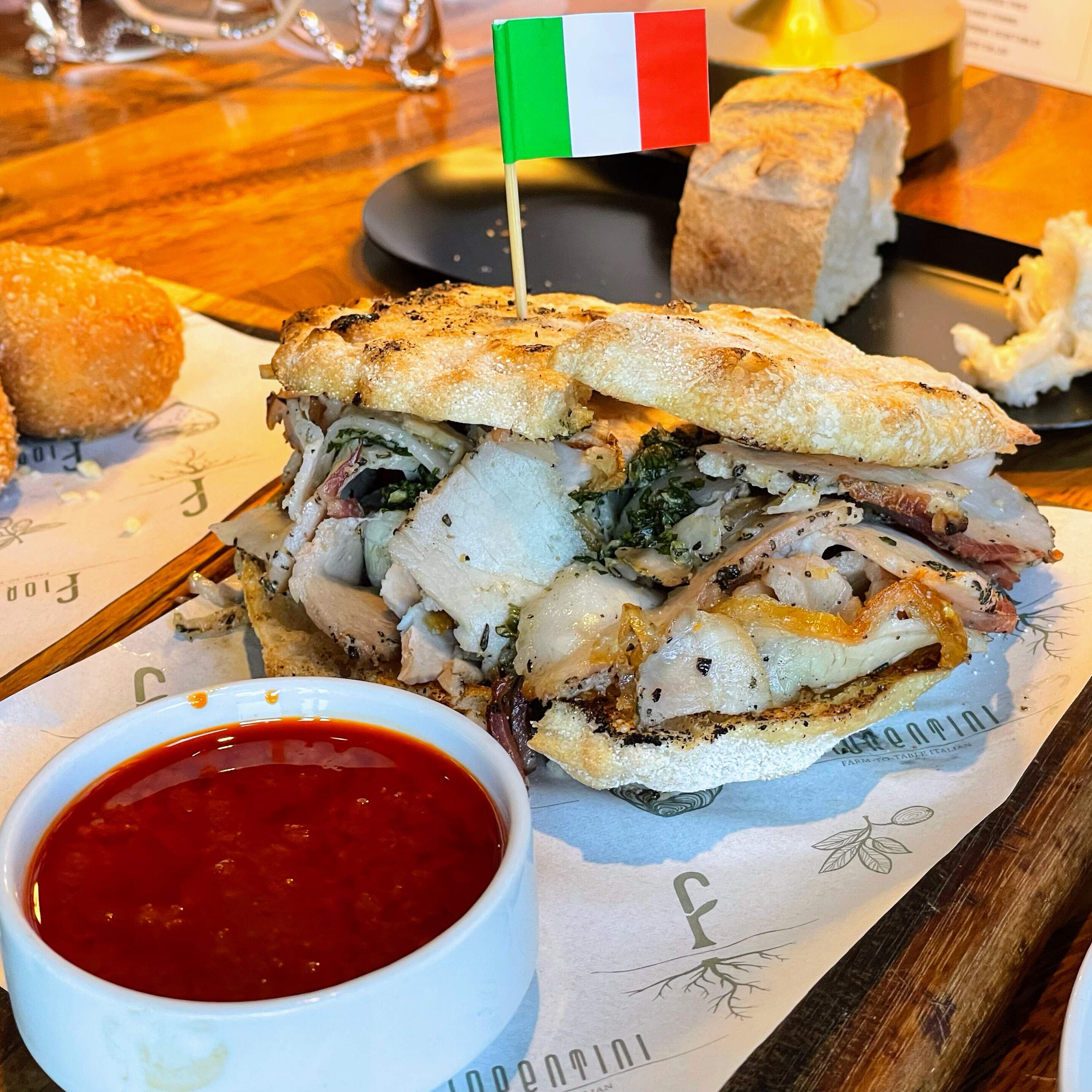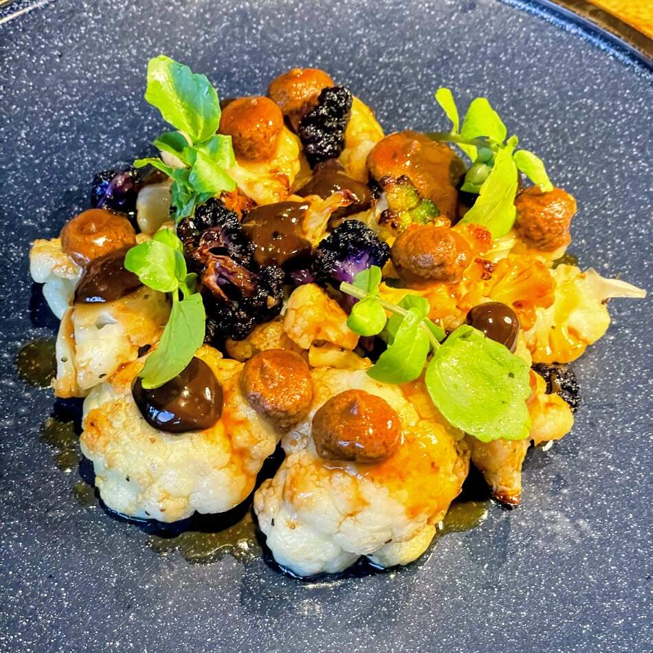 We enjoyed another outstanding dinner at Fiorentini, in Rutherford, NJ, including orrechietti with ramps, wild mushrooms, and gorgonzola; roasted cauliflower with truffle jus, black garlic and ramps; swordfish Milanese; porchetta panino with Calabrian chili; crispy risotto croquette; 24, 36, 60 month parmigiano reggiano risotto prepared in the risotto wheel; lamb skewers. It all went great with a couple of excellent cabernets.