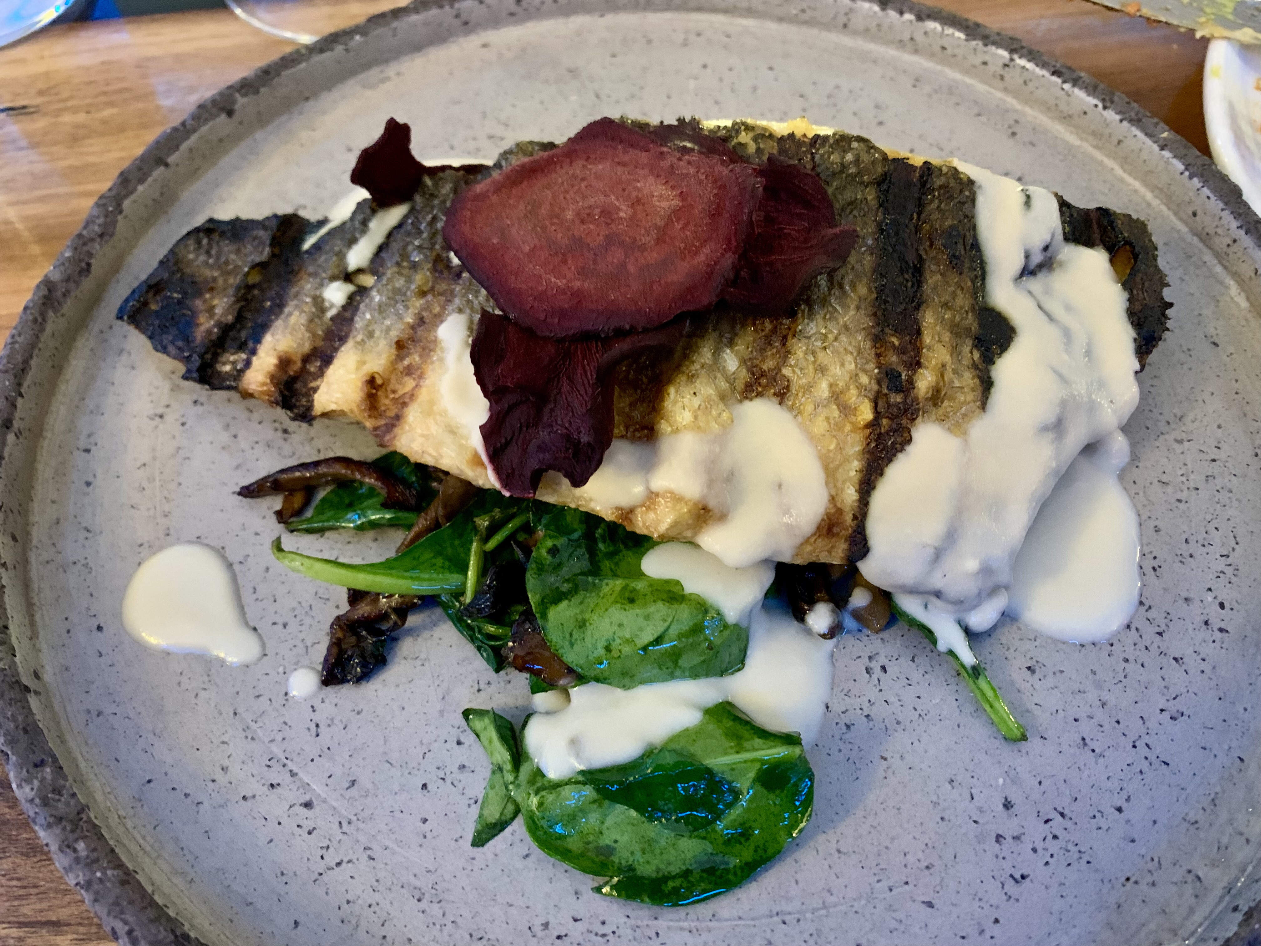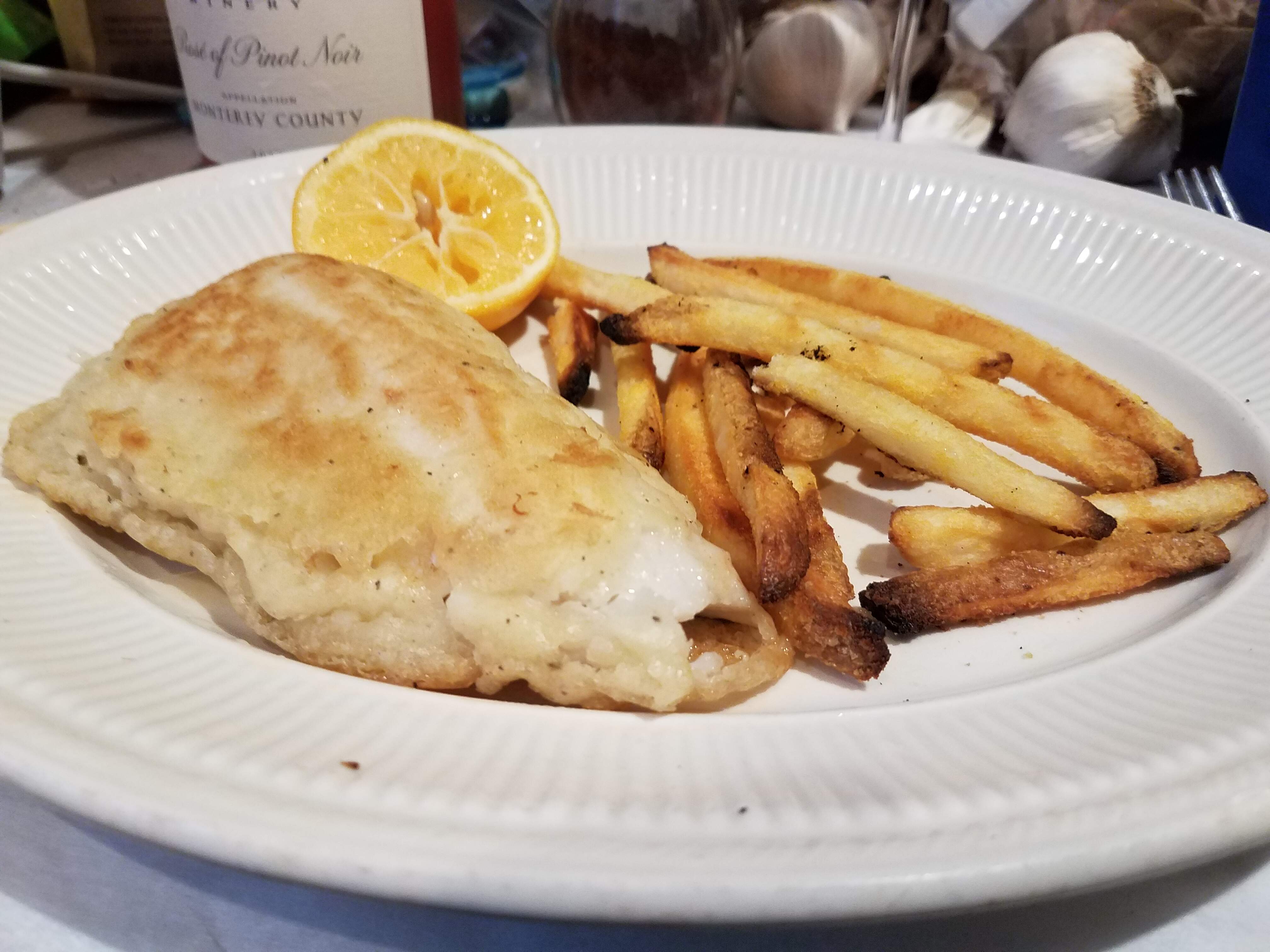 Fish and chips, black cod in a light and crispy batter (crisp from rice flour), somewhat overcooked L&W fries.