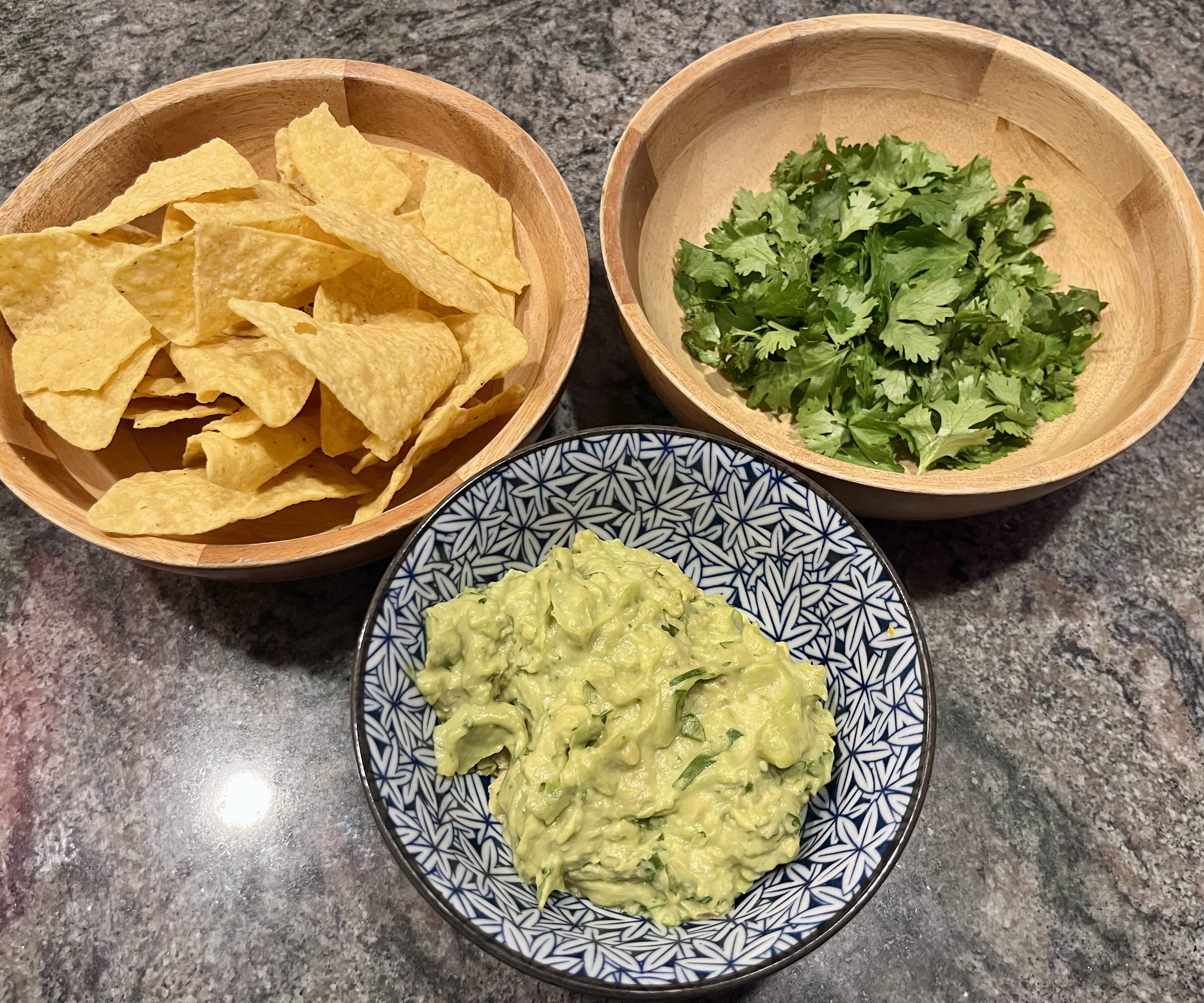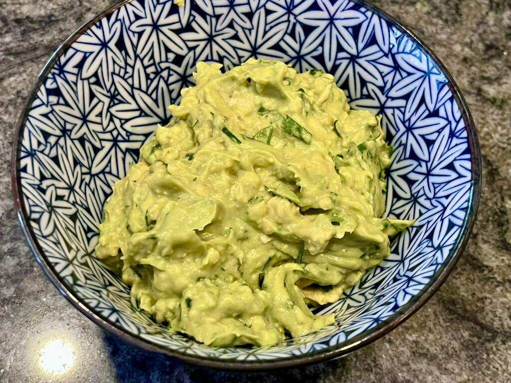 Made a quick 2-avocado guac with lotsa toasted cumin, lime juice, habanero sauce, very finely diced shallot, and a buncha Sinatra (of course!) to go with a handful of tortilla chips before the main event.