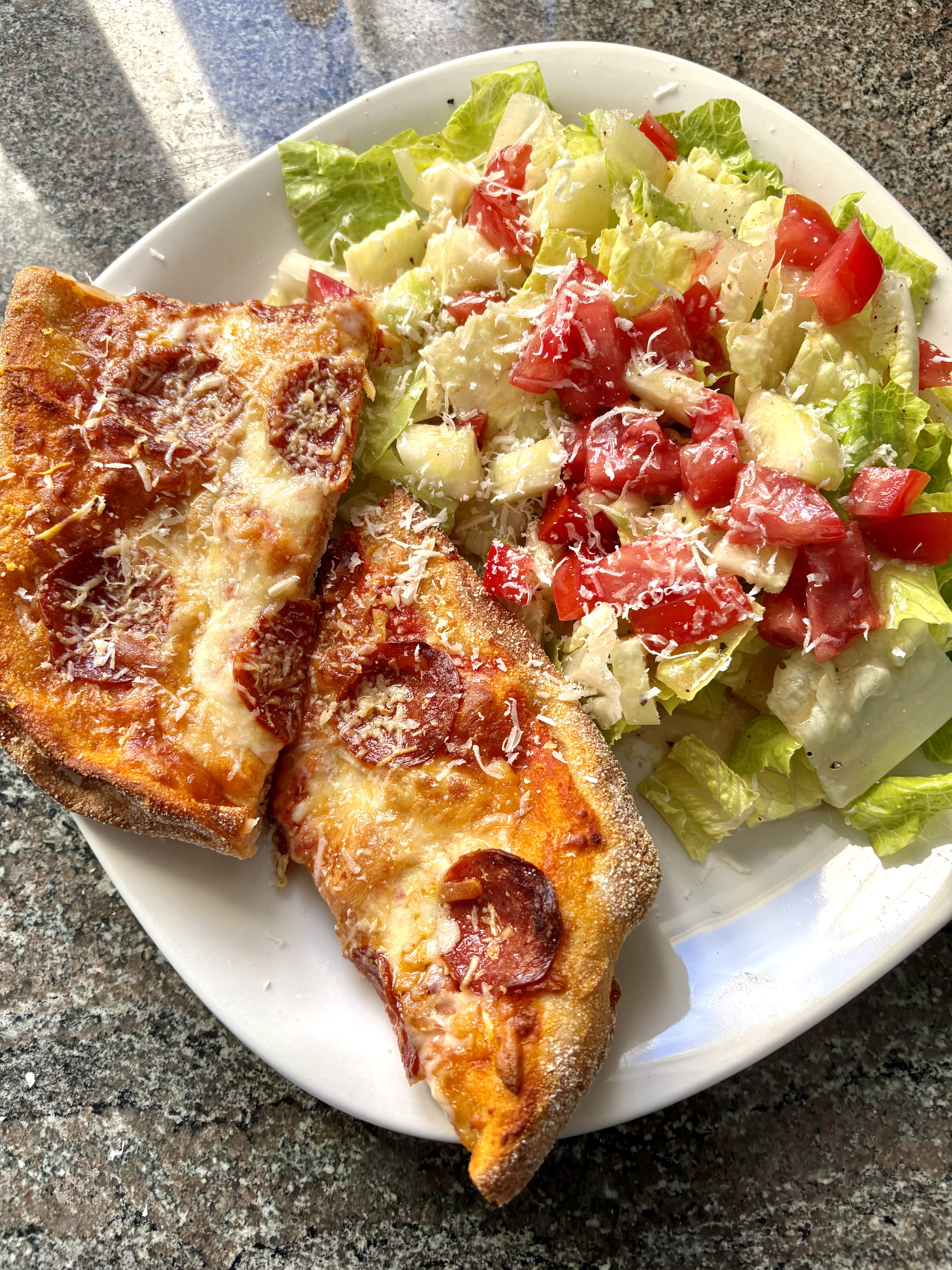 Tried a new to me frozen convenience product from my local grocery store. Pinsa, 'twas pretty good for frozen, I did embellish it with some roasted garlic oil and showered it with Parm/Regg. $10.99 and it’s big enough for 2 meals, would buy again if it goes on sale but my local pizza joint has a way better deal for $10.99. Side salad for health.