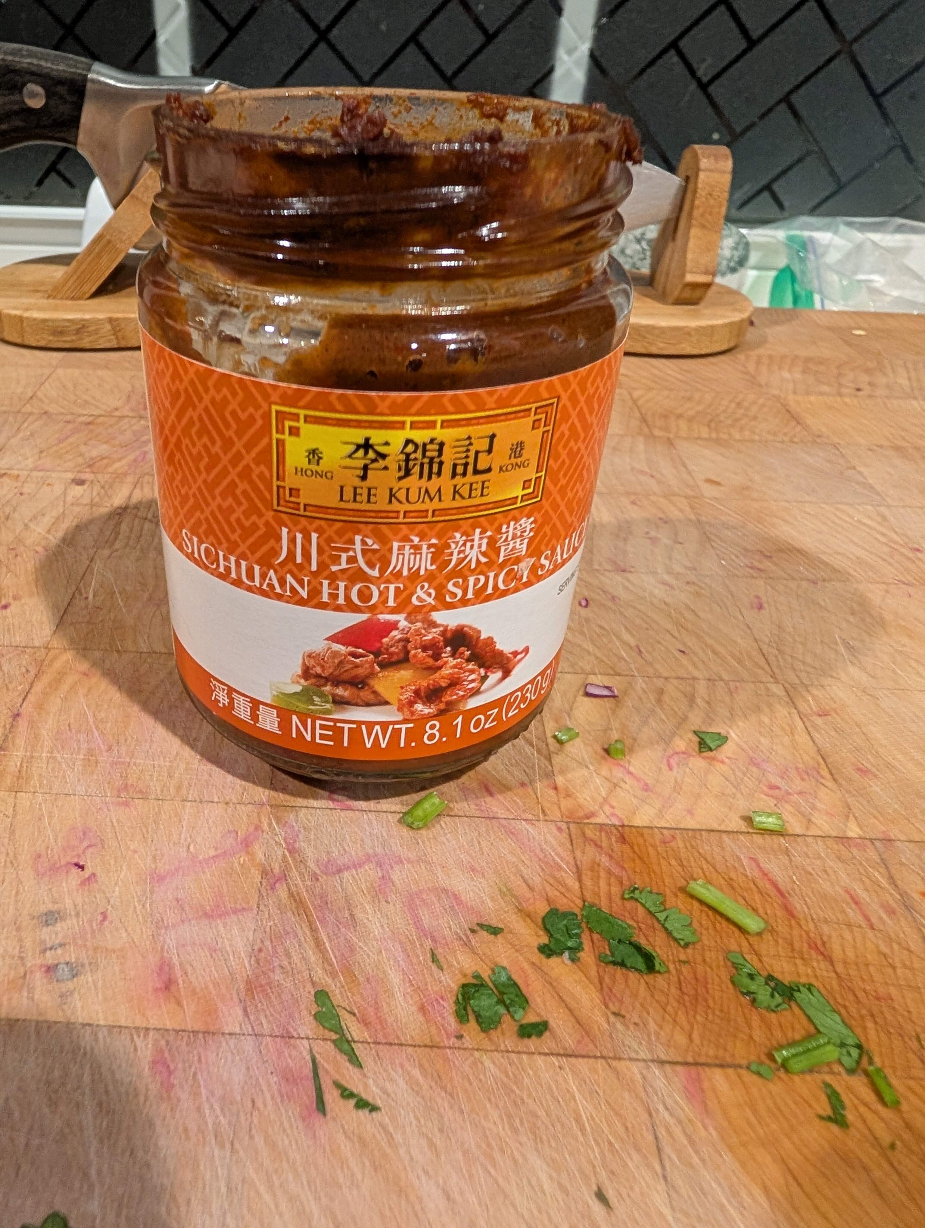 Sauce was a mixture of soy sauce, beef stock, hoisin and this Sichuan sauce from Lee Kum Kee: