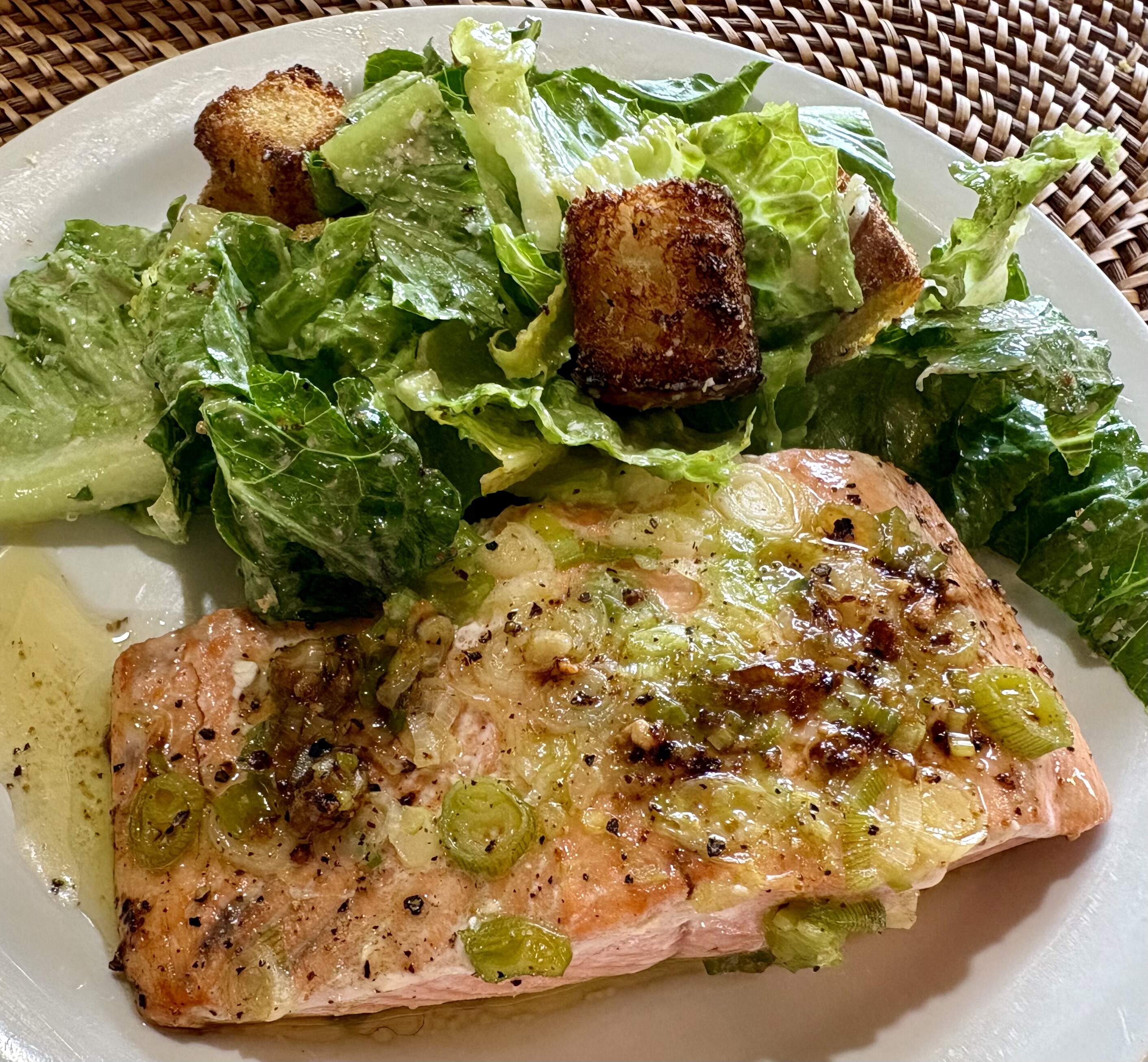 Dinner tonight was a panzanella. It calls for croutons which I normally make myself so I bought a baguette on my way home from my lunchtime walk to make said croutons. But since the bread was fresh I just cut off a couple of slices and used it to mop up the dressing.