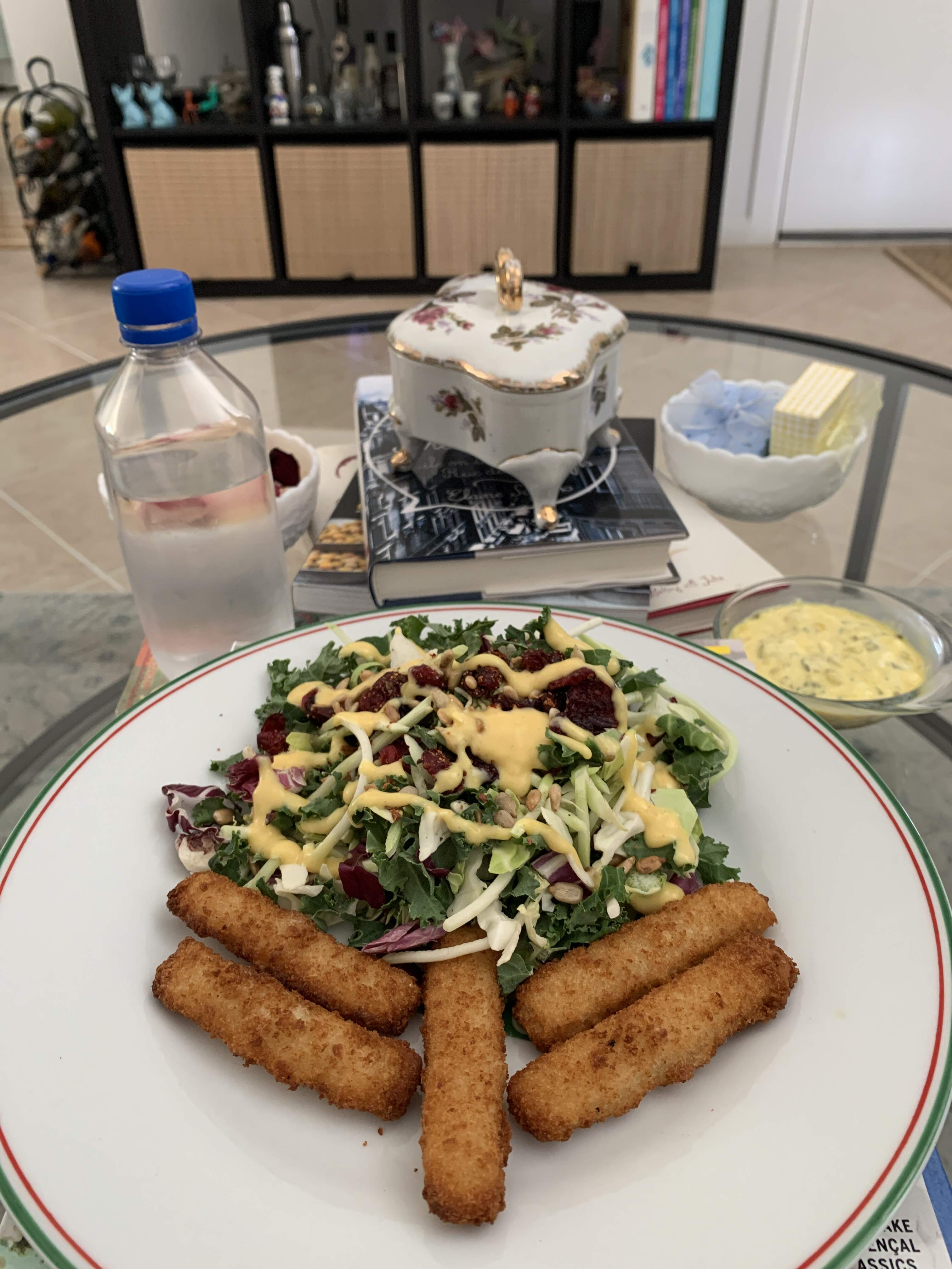 This mix went on top of fried flour tortillas, with another perfectly ripe sliced avo to be added, along with the salsa, more coconut hot sauce, and MOAR Sinatra.