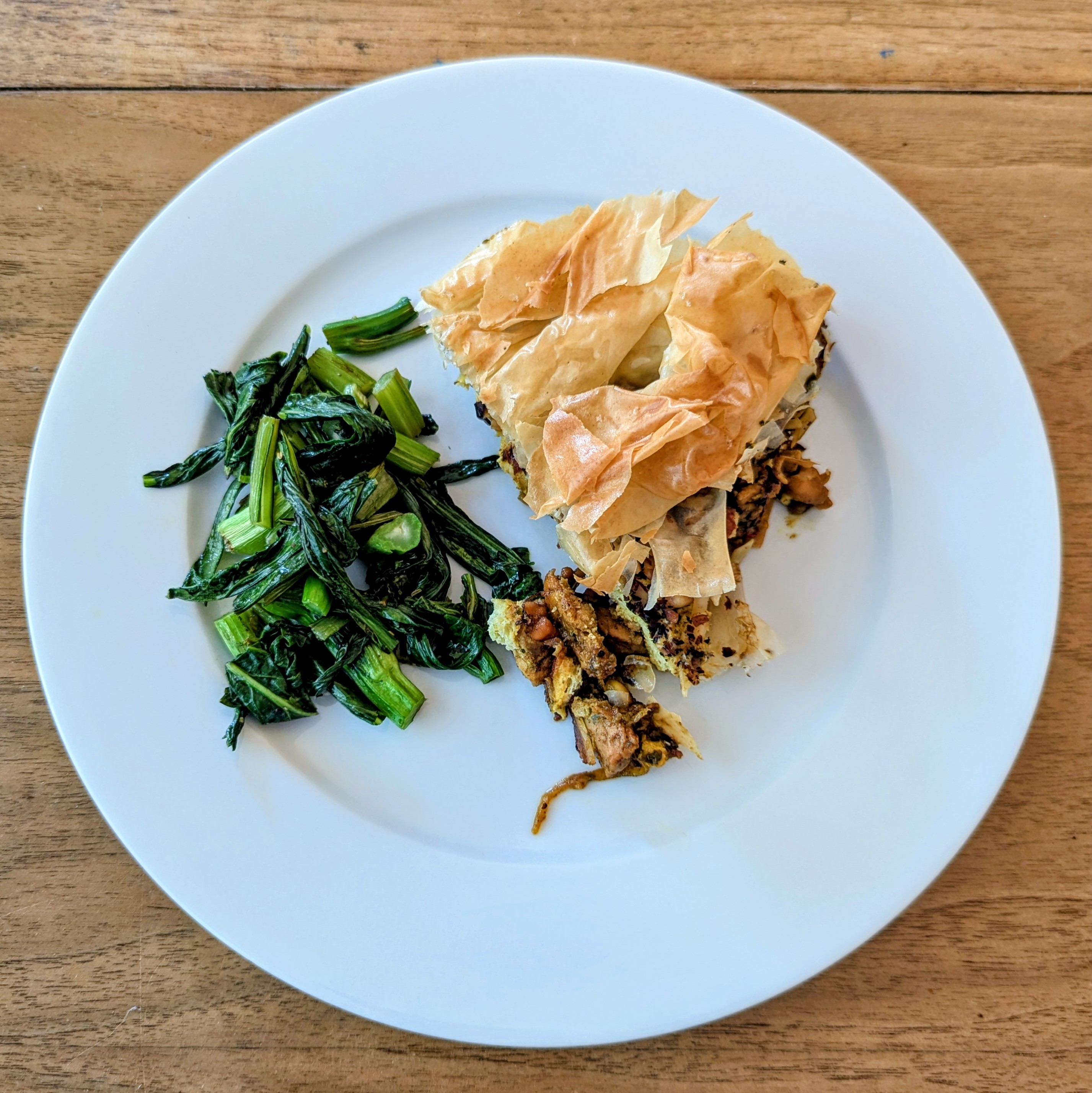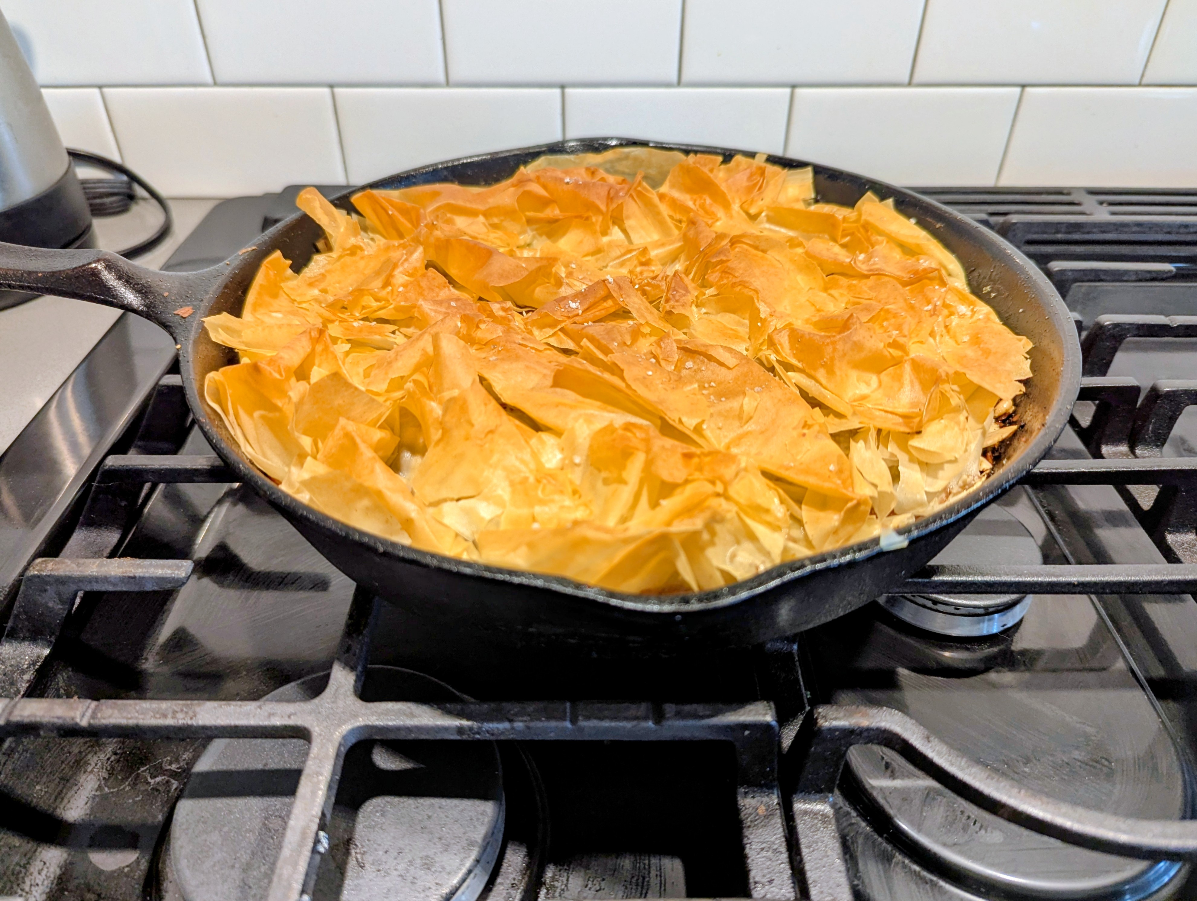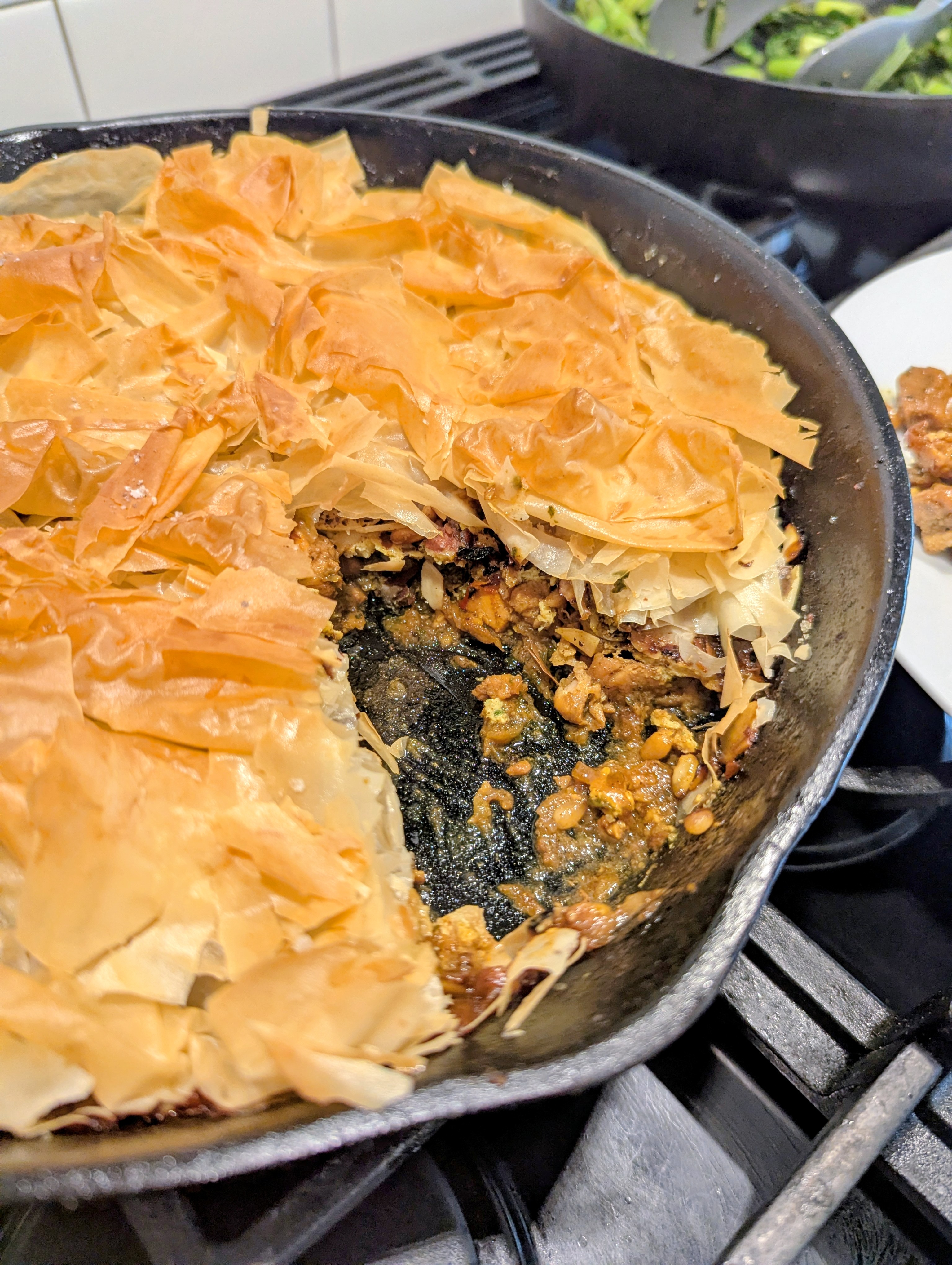Tonight I made Serious Eats’ Bastila, which was delicious with a few modifications. I deeply browned the onions, used a combination of almonds and pine nuts, included the optional saffron, increased the phyllo, swapped olive oil for butter, and added a little chicken bouillon and soy sauce to the filling. This was a savory and lightly-sweet hit.