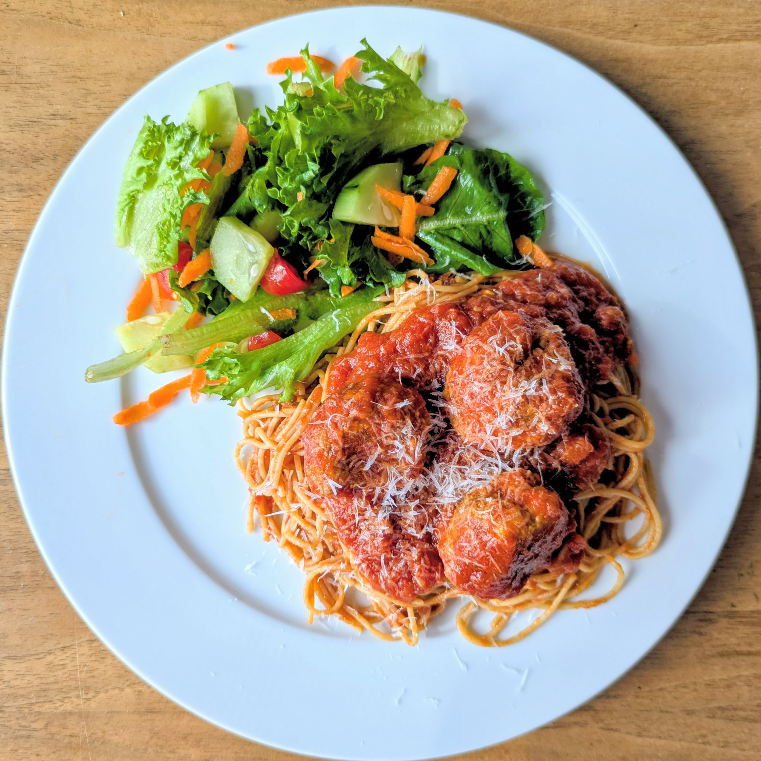 Dinner was a super-easy affair: barilotti cooked yesterday to magically turn them into fiber overnight with what I thought was lamb & snossidge sawce from the deep freeze. What it actually was was…. kinda hard to tell.