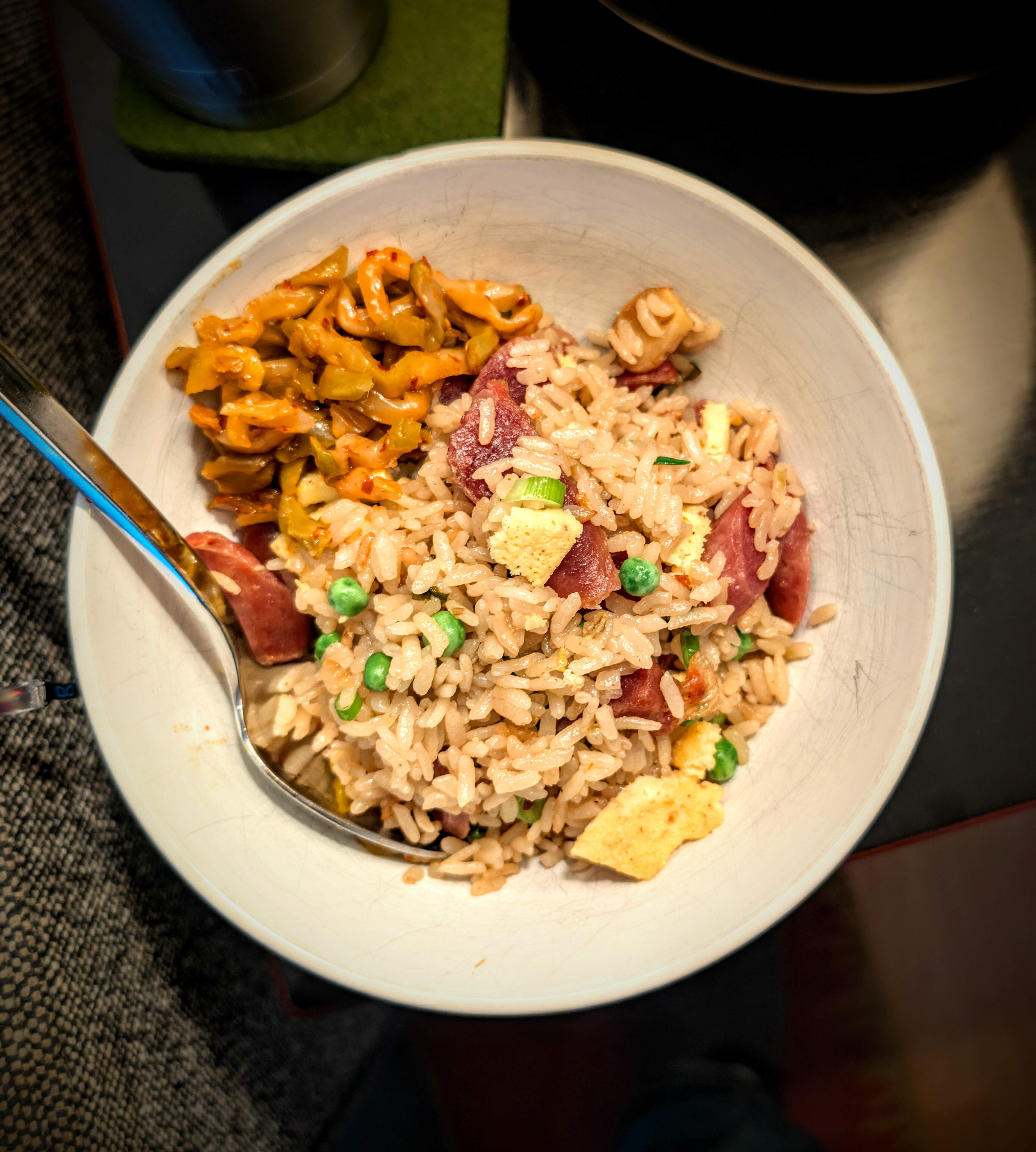 It was still on the bland side, of course, so I added a buncha RPF, a splash of Layer Cake Cab that was open, a couple of garlic cloves, and a blub of Rao’s marinara. Not a catastrophe per se — just not what I expected, but at least it was much more palatable with the few additions I made.