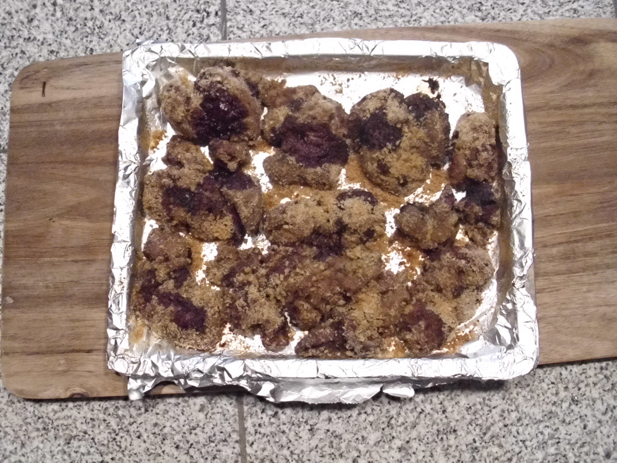 Last night Sunshine had a “Girl’s Night Dinner” at a friend’s house, so I was solo. Friday, I’m due to donate blood again and the last time my iron was just over the acceptable limit. So… I decided to eat some chicken livers for my dinner. I was lazy, and just did a quick rinse, dredged them in bread crumbs and baked them off. They don’t look all that appetizing, but they were quite good.