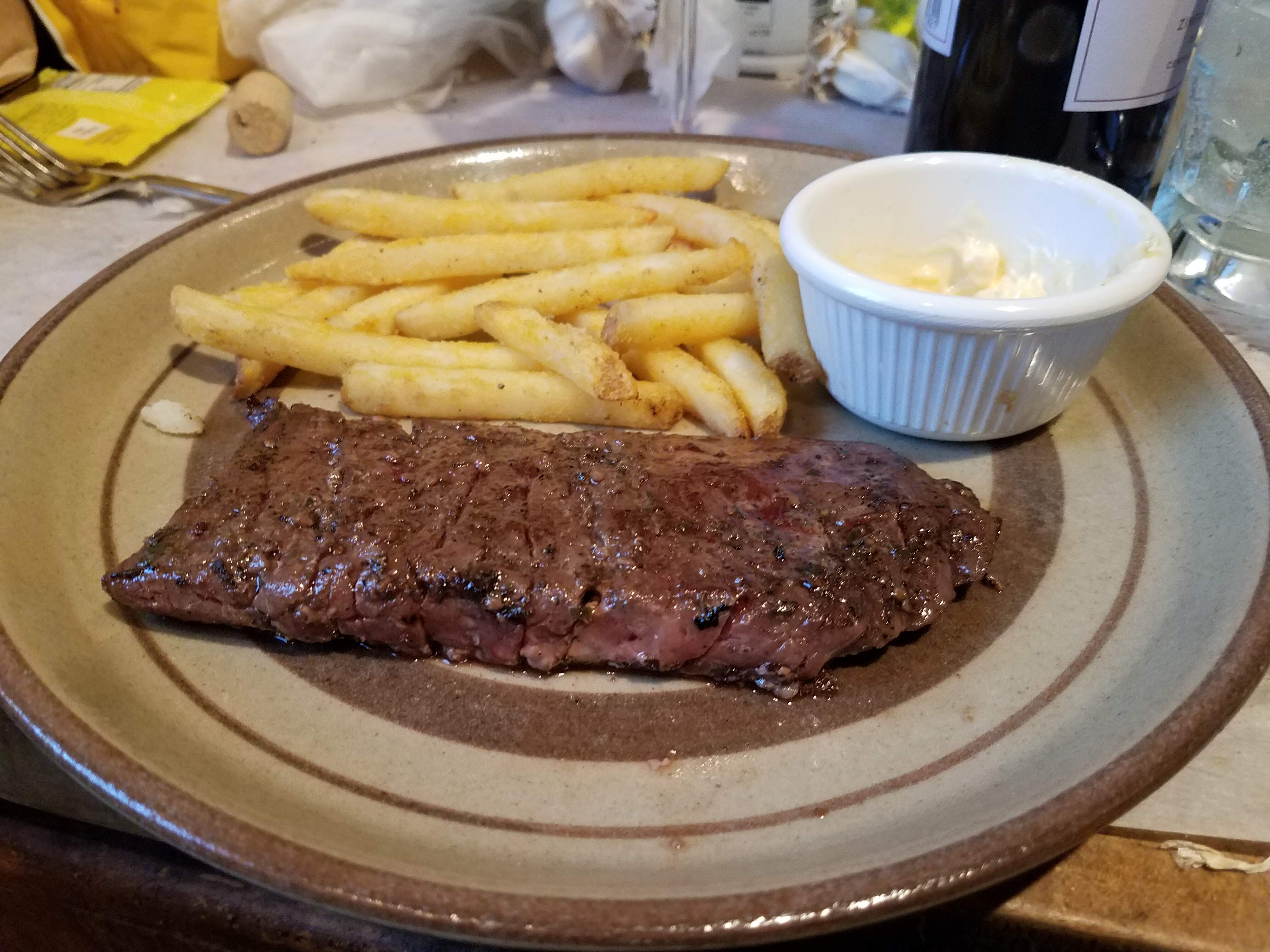 Steak-frites, Kewpi aioli. I’m giving up on this cut, flap meat. It’s supposed to be another name for bavette, but it’s too stringy and tough. L&W fries were good.