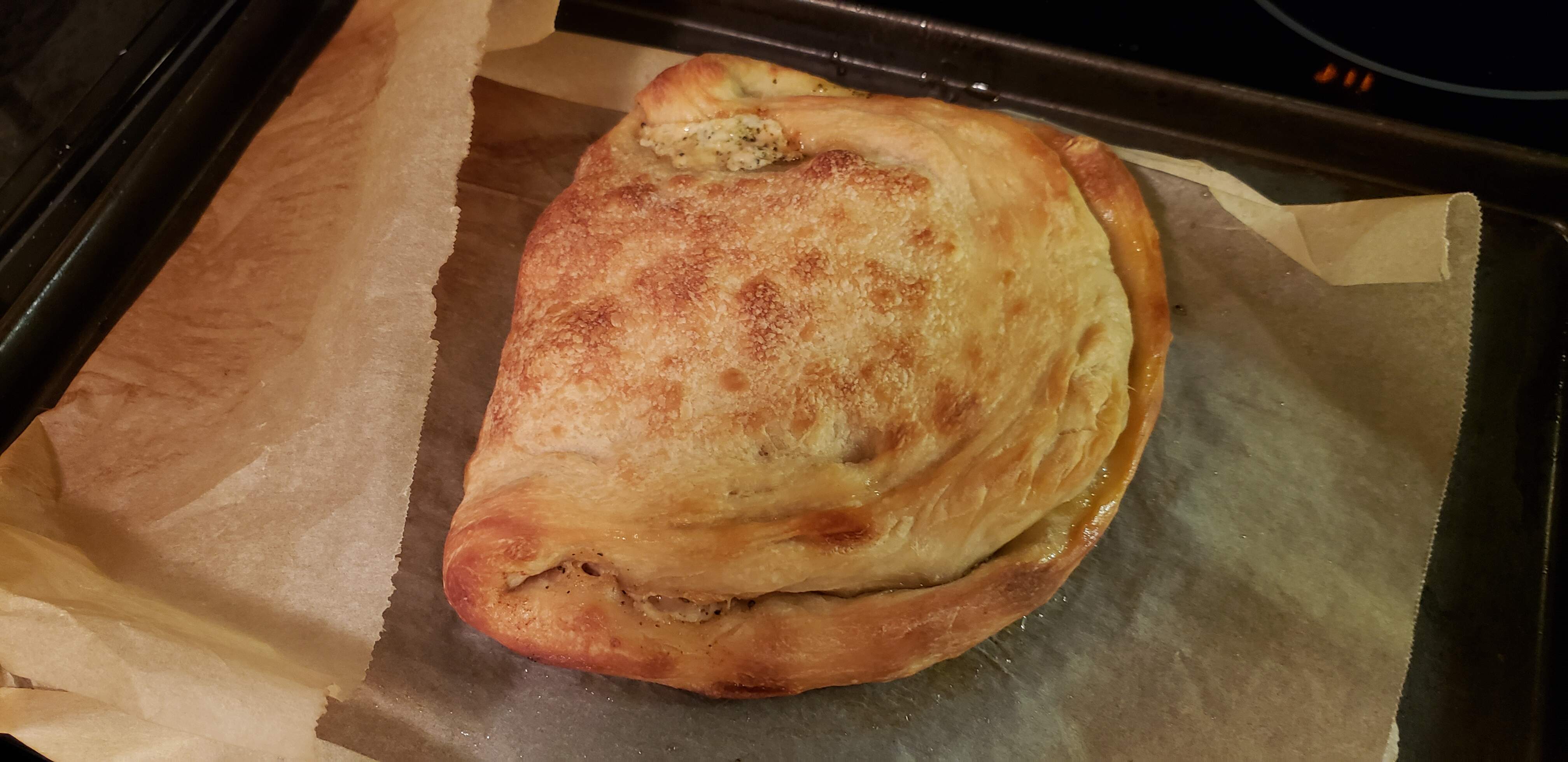 A pretty meh calzone tonight…chopped salami, roasted broccoli, ricotta mixed with Italian seasoning and garlic powder and Parm-Reg, and some mozzarella.