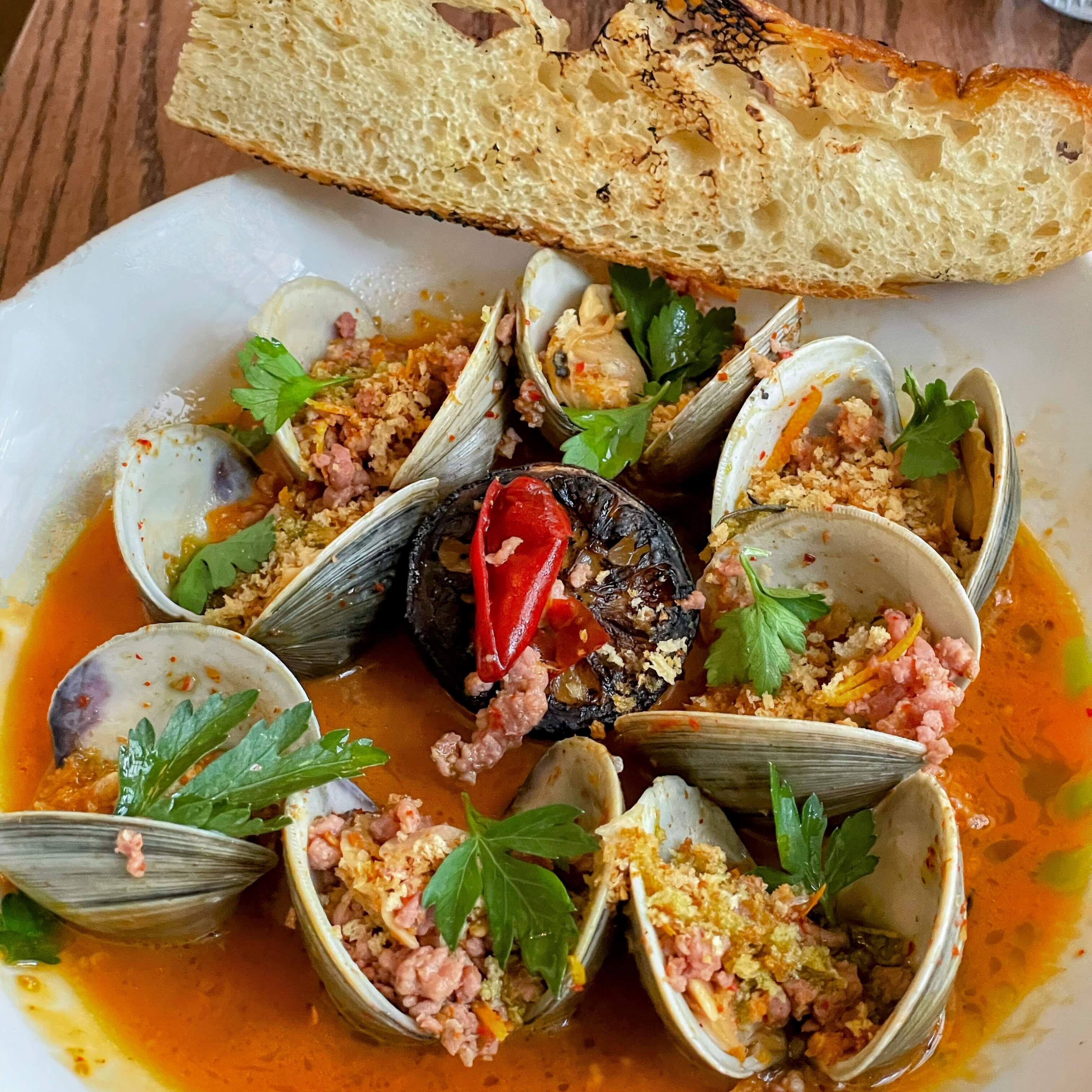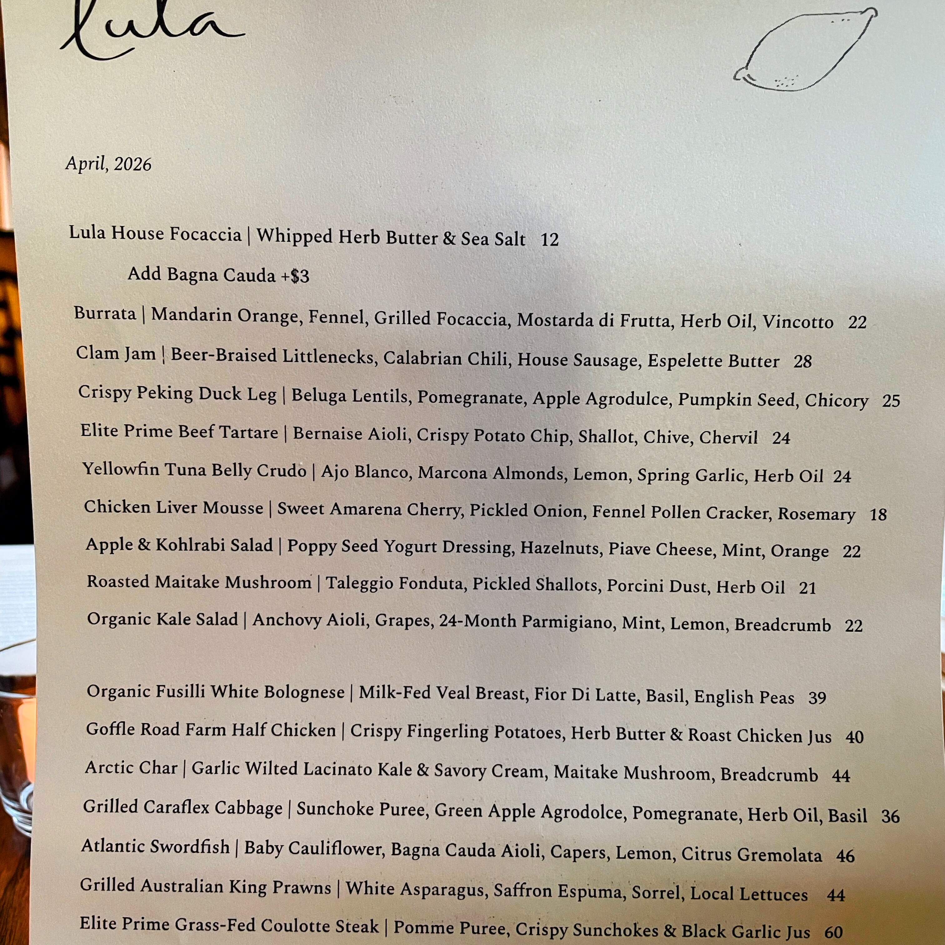 We enjoyed another outstanding dinner at Lula in Ridgewood, NJ, including clam jam; roasted Maitake mushroom; white bolognese; yellowfin tuna belly crudo; apple and kohlrabi salad; excellent foccacia. We took home lemon meringue pie for dessert. It all went great with a couple of excellent cabernets. The menu at the end gives more details.