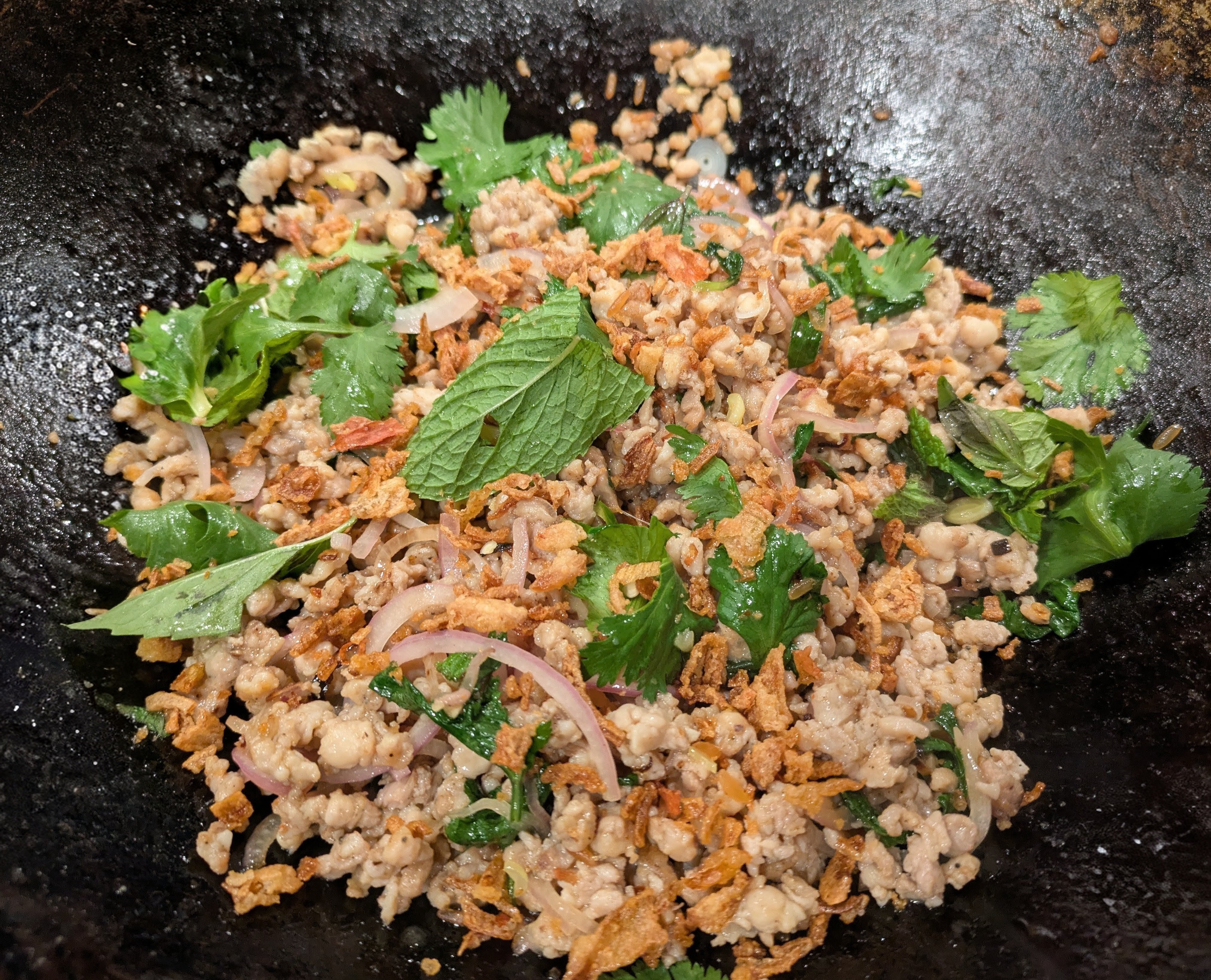 Woks of Life Chicken larb.. My crispy rice powder could use some tweaking, but maybe it’s because I use whatever rice I have, which is converted.