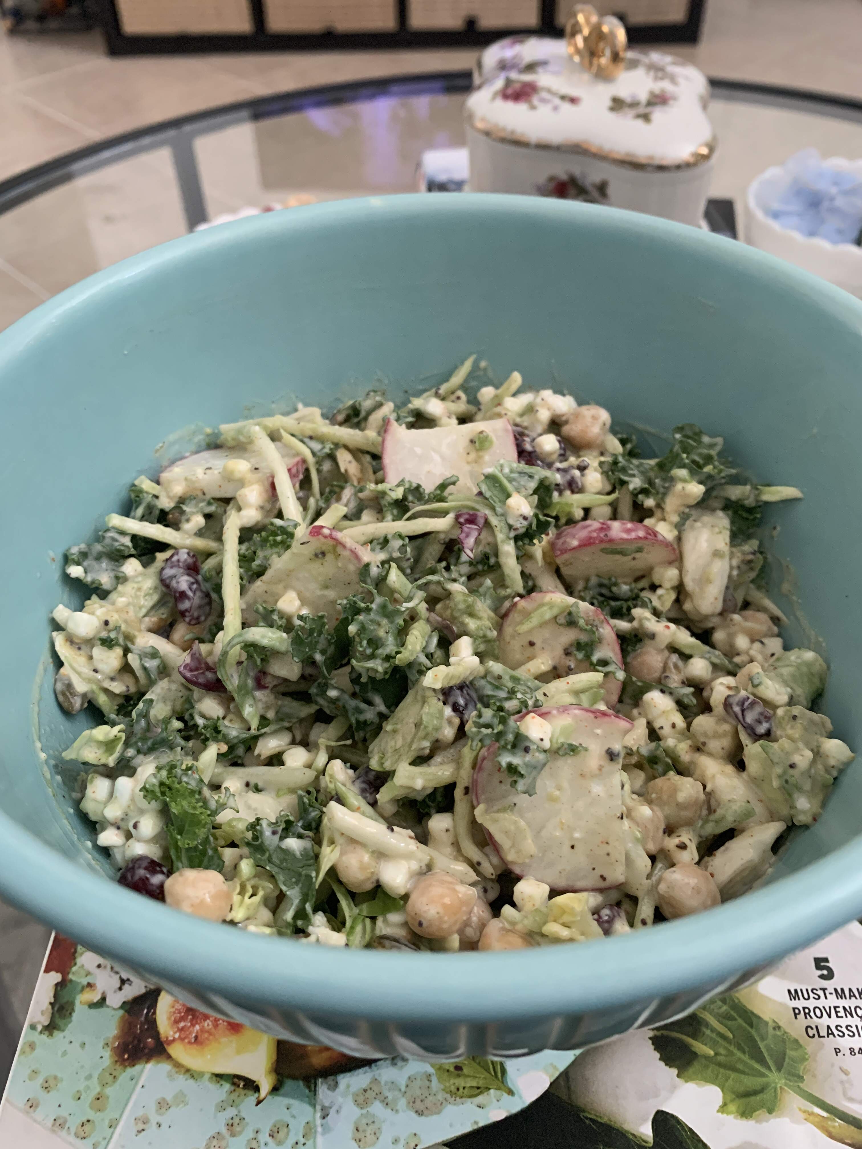 Plumbers at the house all day finishing up my bath/shower area so didn’t eat till they left. Was ravenous so just threw together a salad.