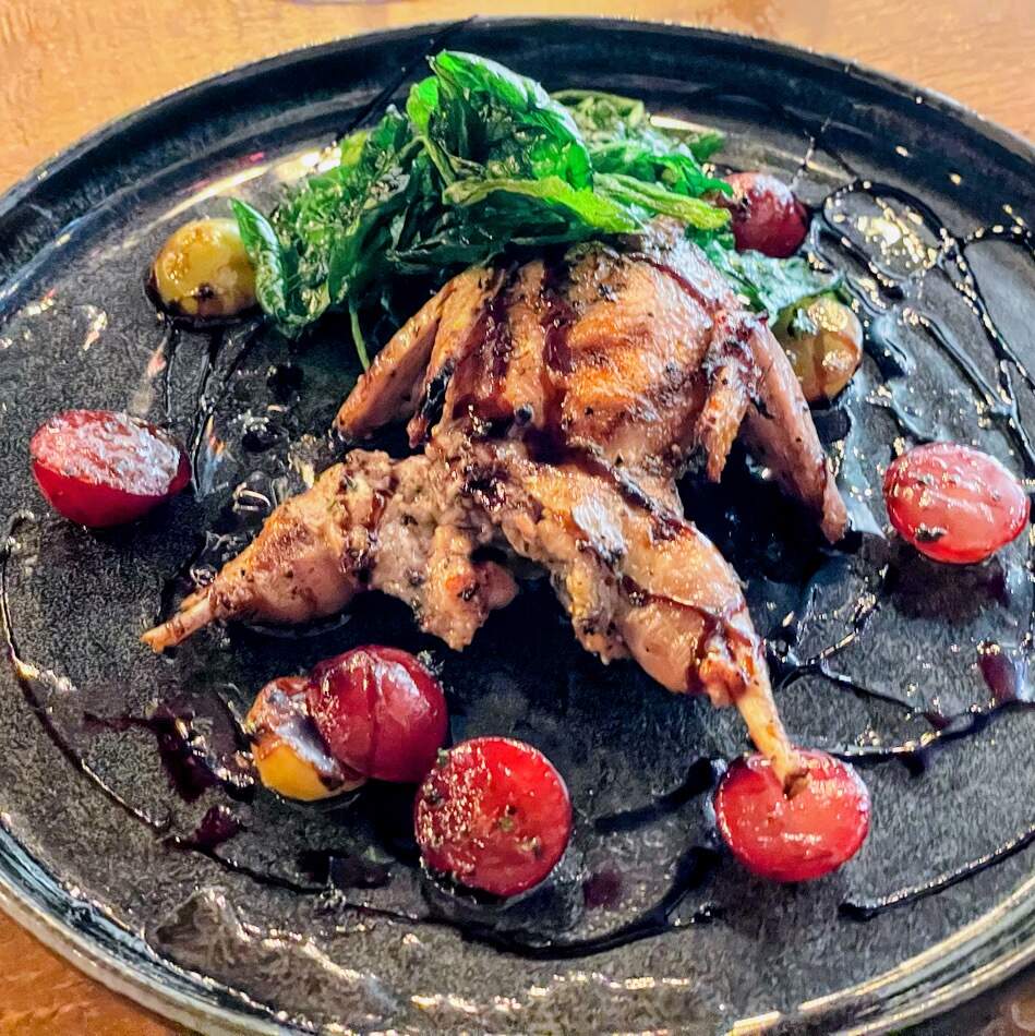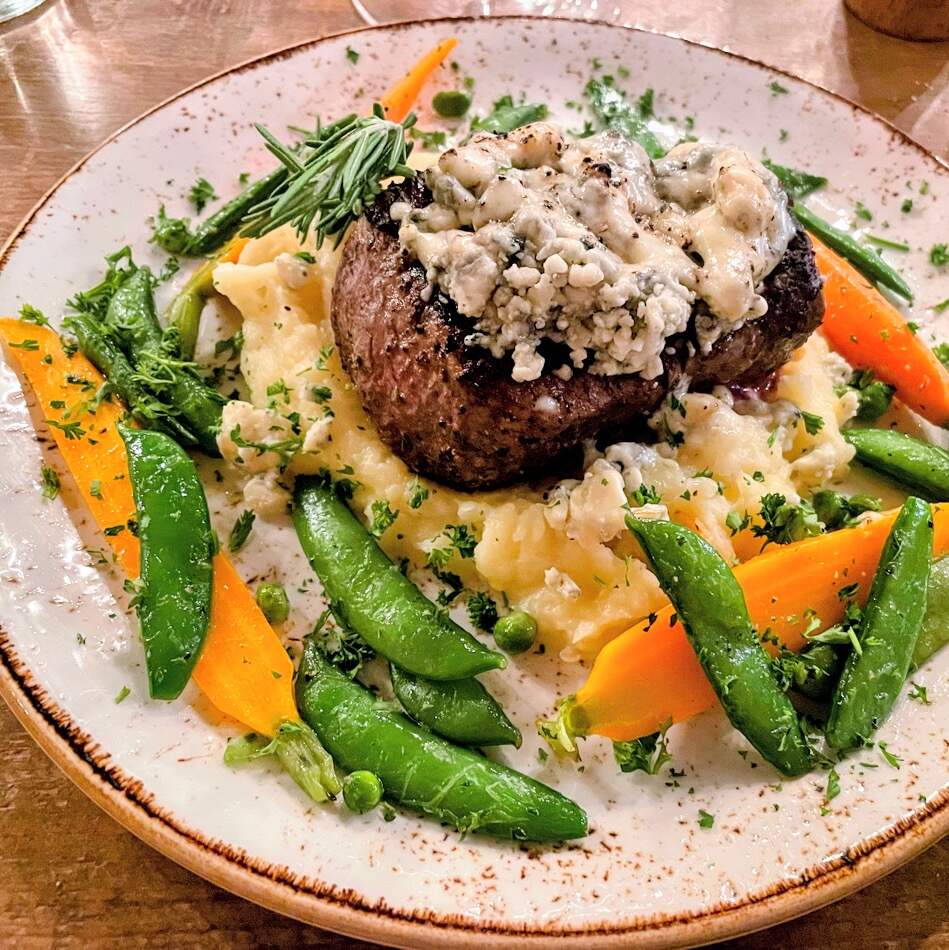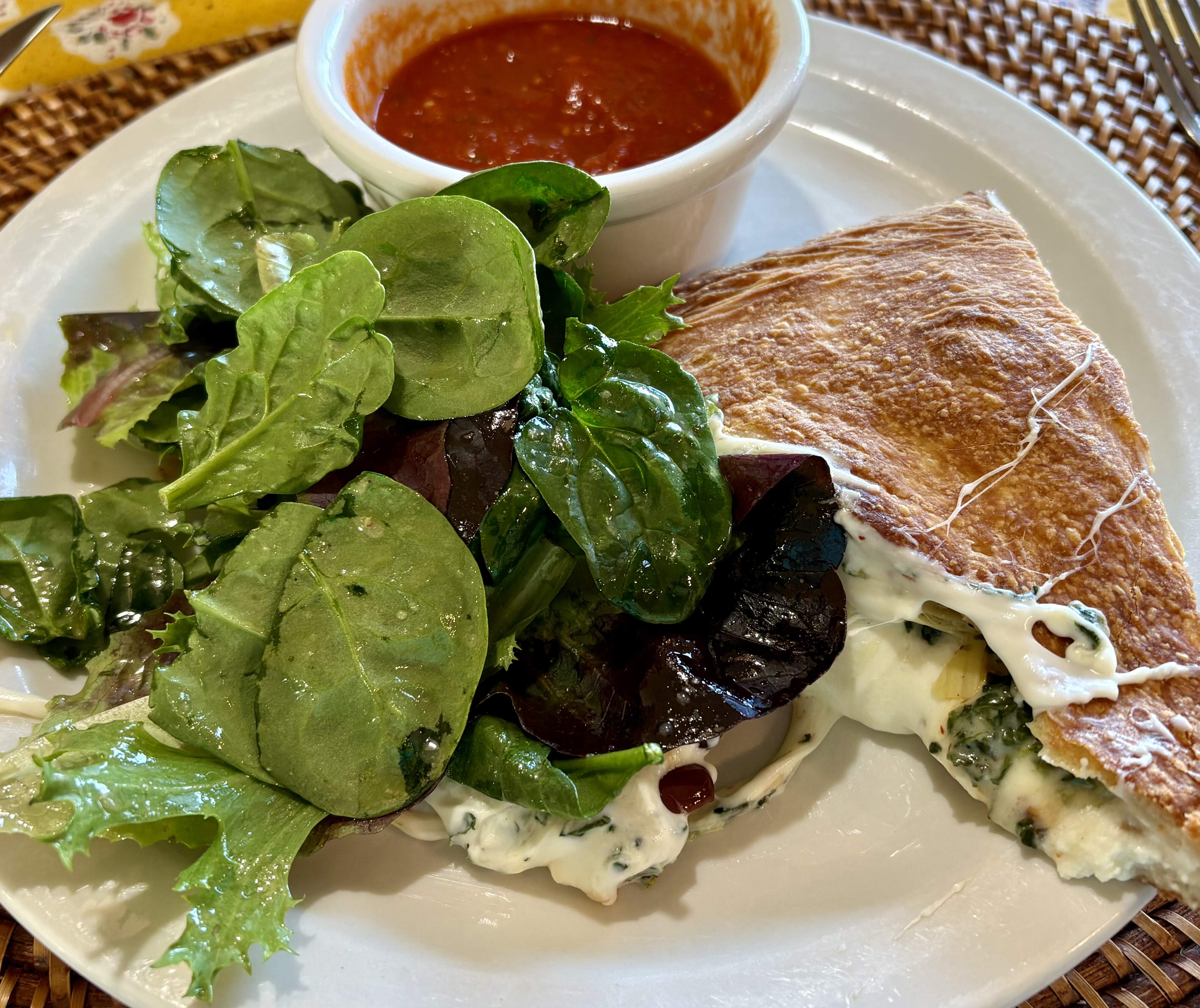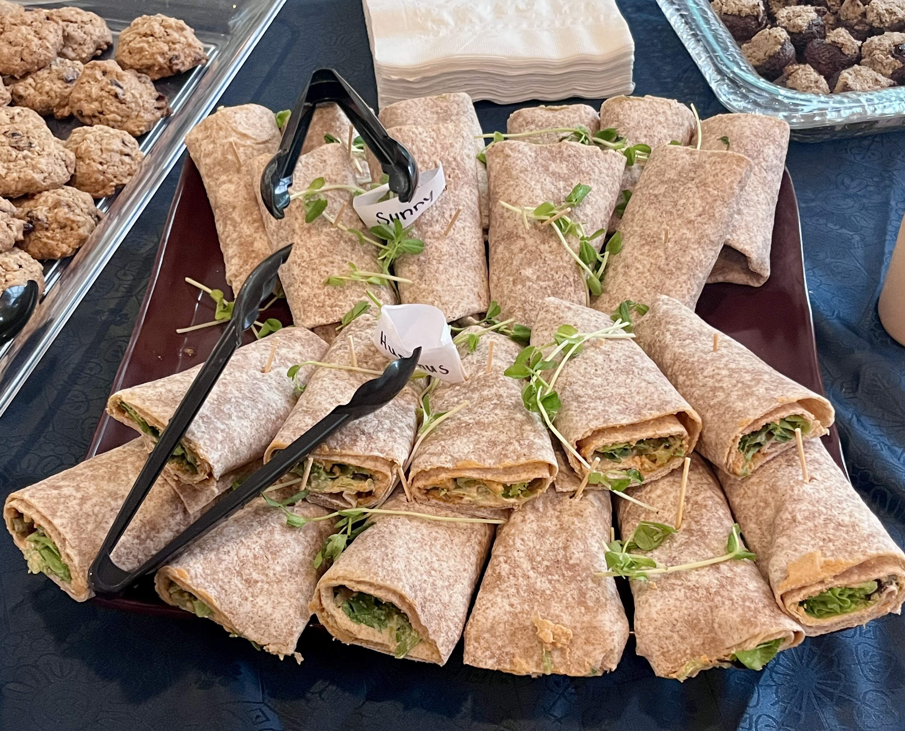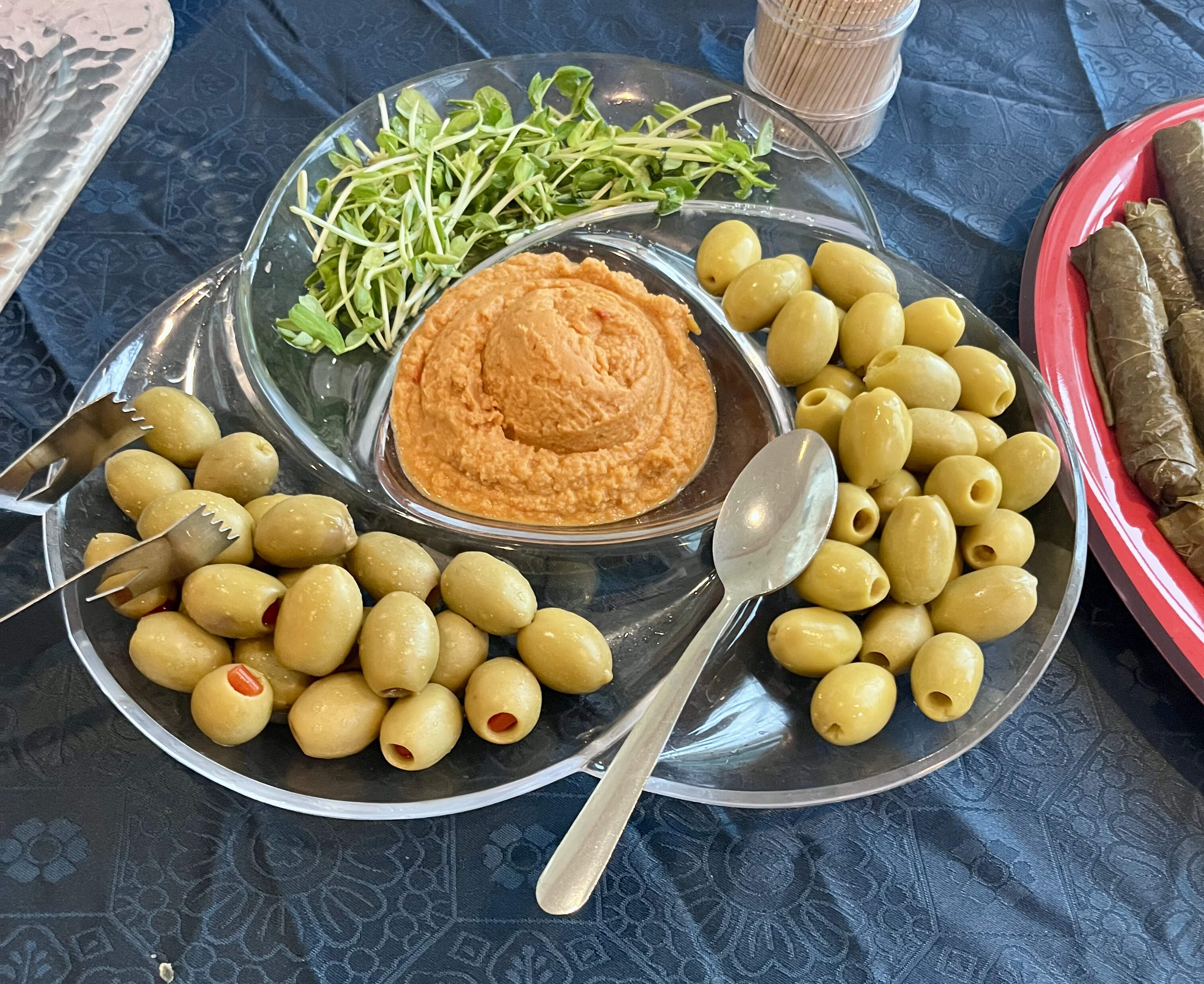 and walnut paste-stuffed mushrooms — the most edible of the offerings besides the (non-vegan) cheese.