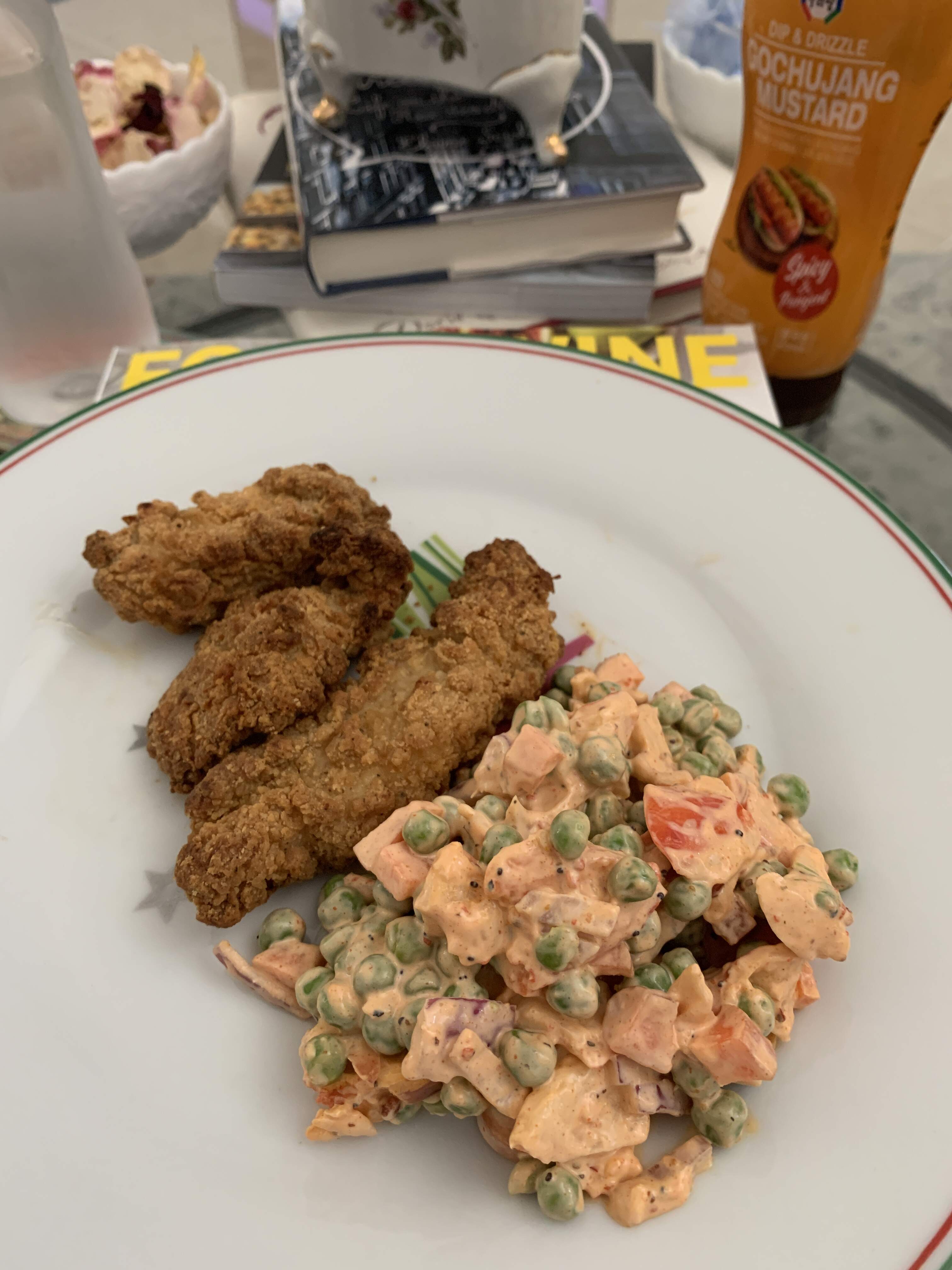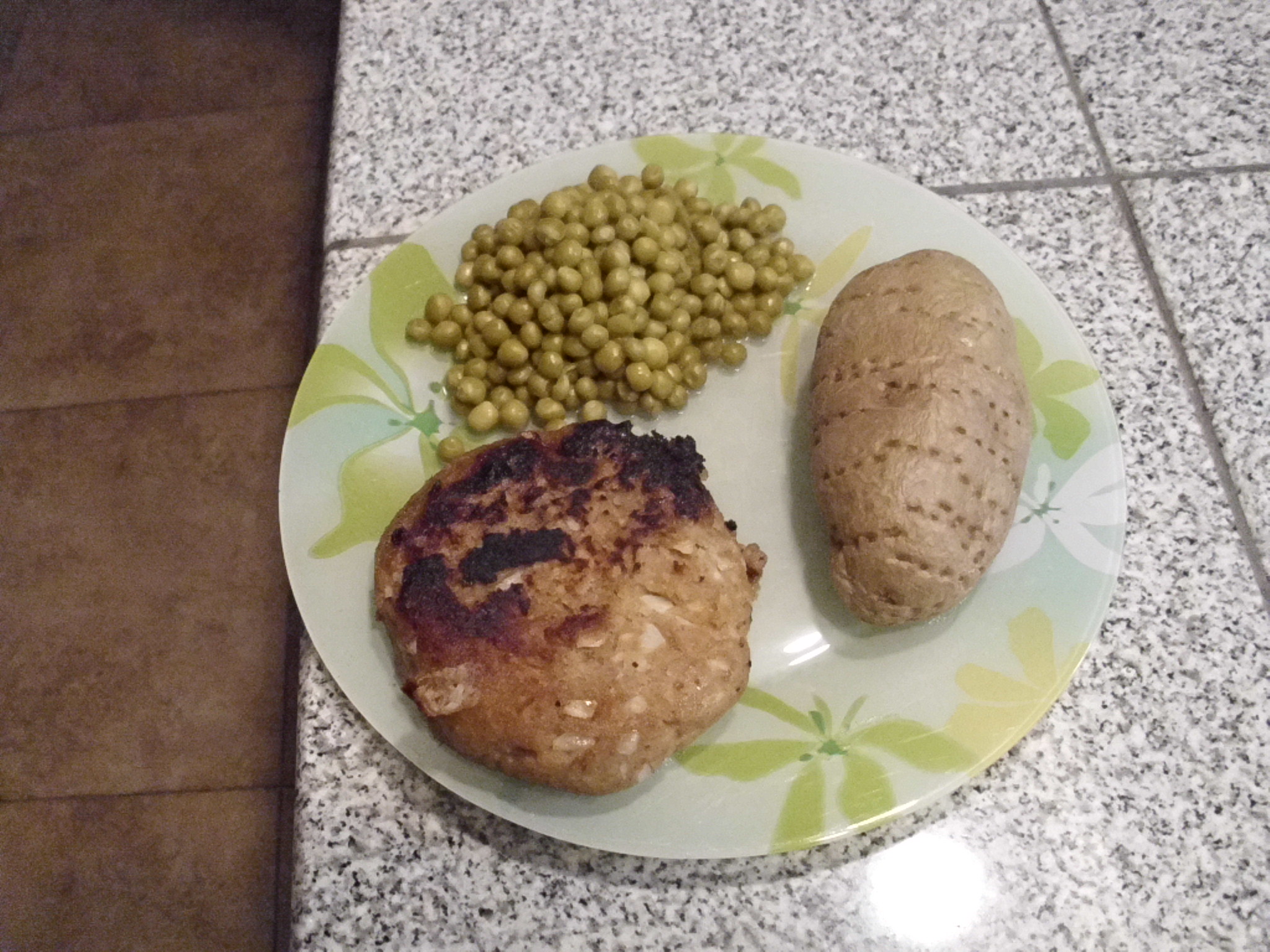 Tonight’s dinner was another repeat – Tuna Cakes, Baked Potato and Peas.