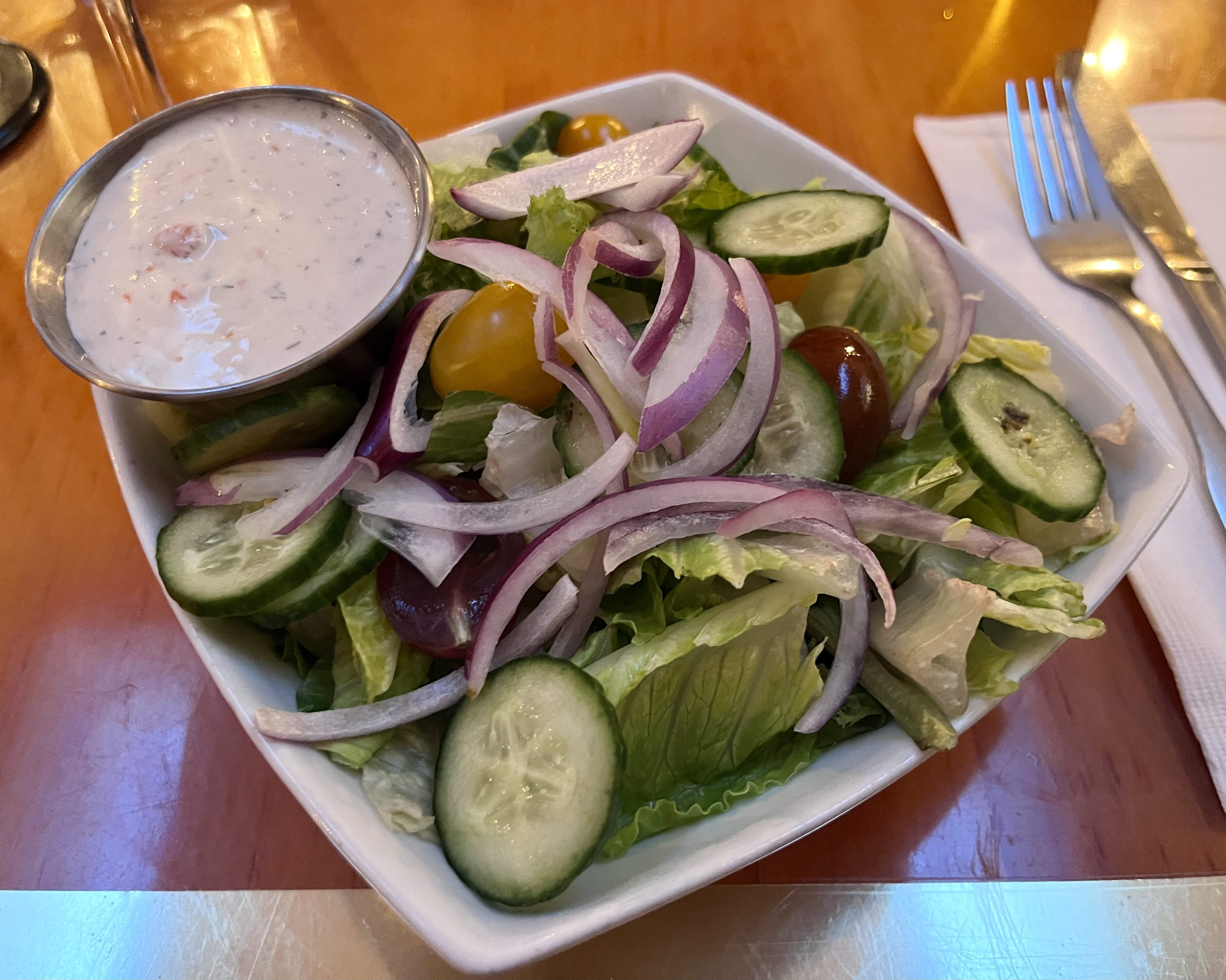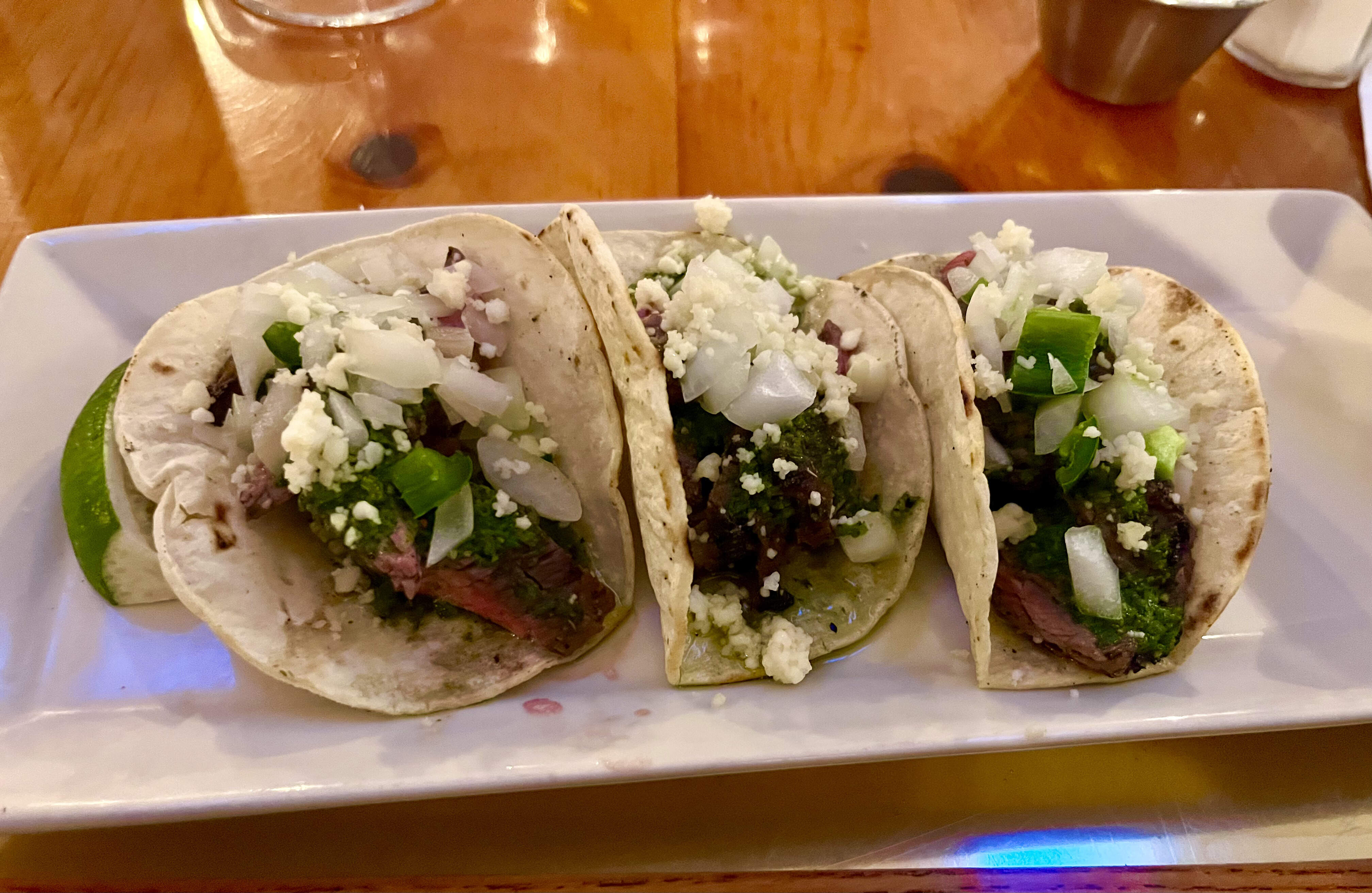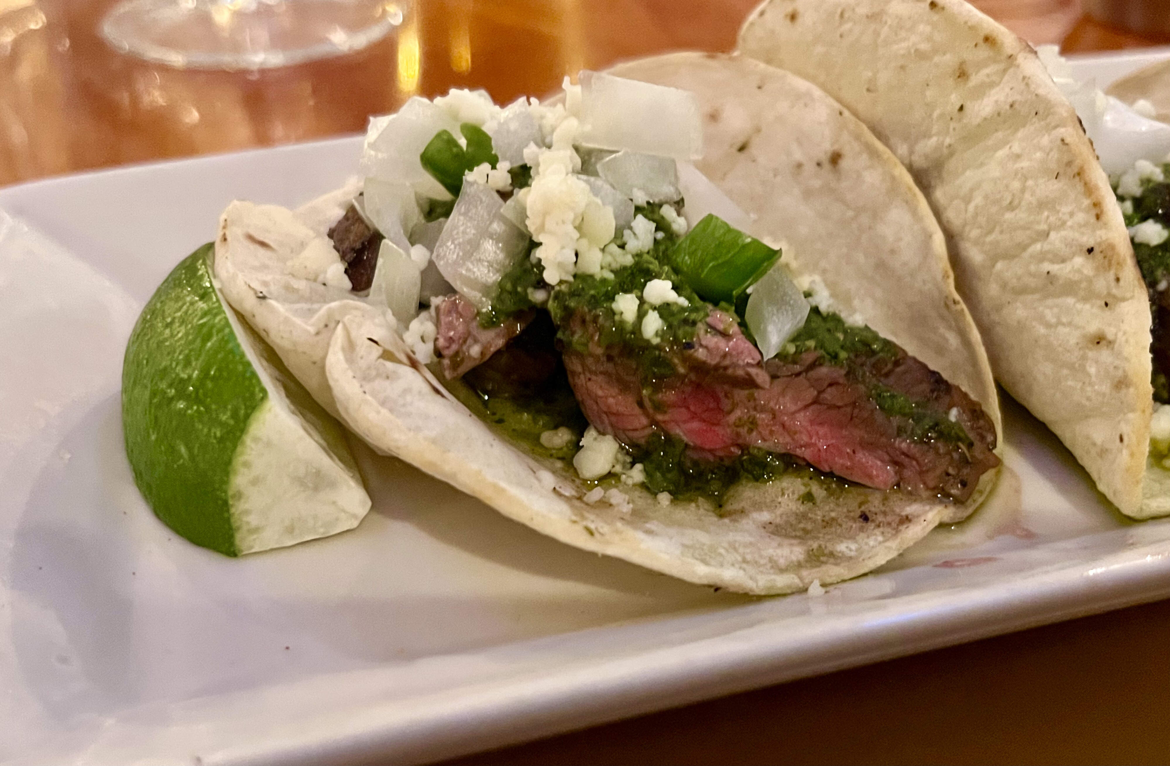 I chose the chimichurri flank steak tacos & a side salad with ranch dressing made in house (best I’ve had anywhere). A bit skimpy for $15 on the amount of perfectly rare steak, but I know beef prices are up, and unfortunately it was also lukewarm after having sat in the window for longer than necessary… I’d peeped our order sitting in the kitchen window and let my pal know while getting an extra cup o’ ranch. ![]()