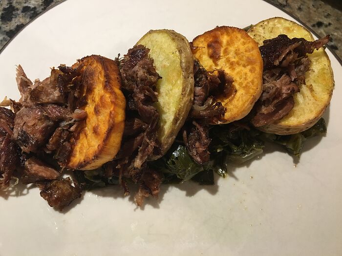 Made one of my all time favorites, a version of african peanut stew with sweet potatoes, black beans, kale, fennel, tomatoes, peanut butter, coconut milk, smoked paprika, smoked salt, and my secret ingredients a big gob of dijon and glug of soy sauce. Had some for sunday dinner (and monday dinner, and lunch today), and stashed a few servings in the freezer.