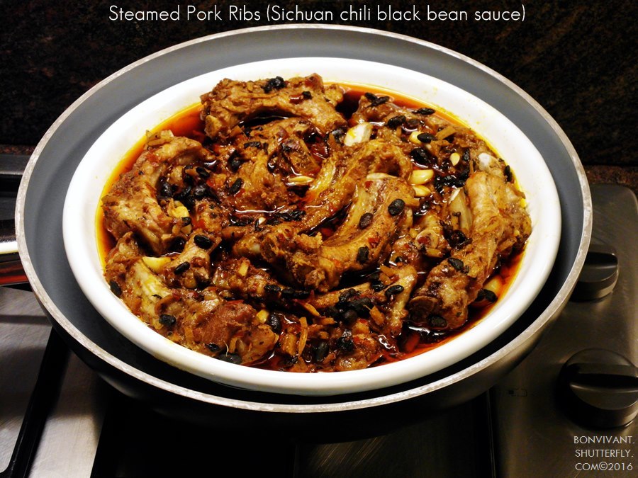 Is steaming as we speak. I added extra fermented/salted black beans to the chili sauce. There are also ginger root, sherry, lots of garlic, a pinch of sugar, soy sauce. I think that’s about it. Camera is in the shop today so that the sensor can be cleaned for the first time in 10 years. I can’t stand the fuzz that’s been sitting on the sensor anymore. Finally fork out 50 euros to get it cleaned.