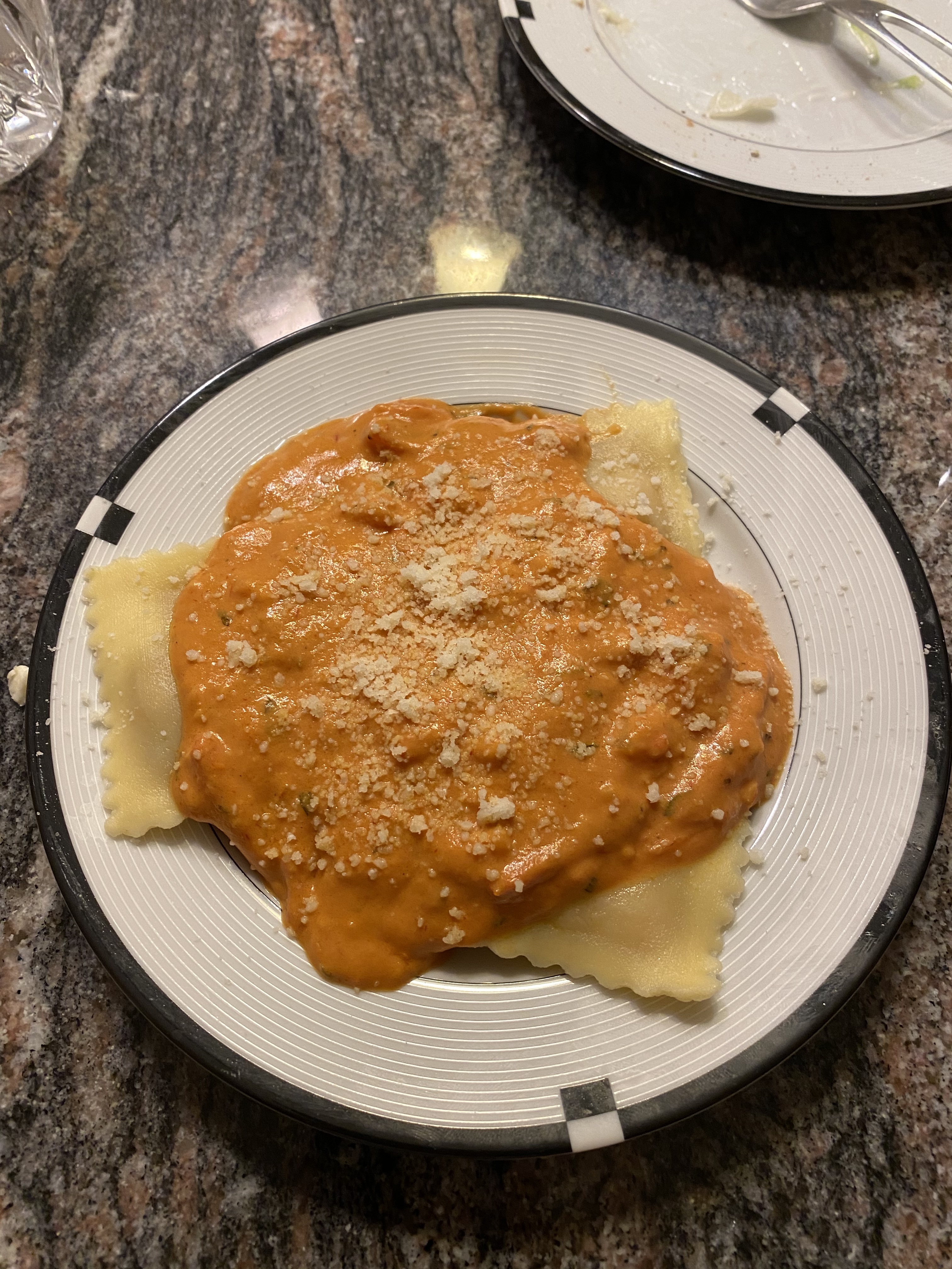 We have shrimp cocktail and charcuterie board, mini wedge salad, lobster ravioli in a vodka sauce, tempora fried lobster tail over a corn infused butter drizzled with homemade hot honey, cream of tomato soup with