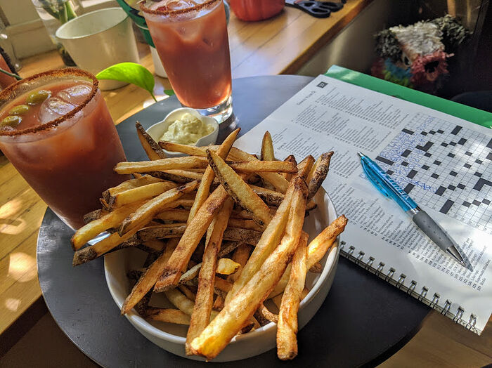 Fries were had for brunch, of course - one batch with russets, the other these giant yellow potatoes I’ve been finding at TJs. I think we prefer the yellows - they turned out crispier & fluffier.