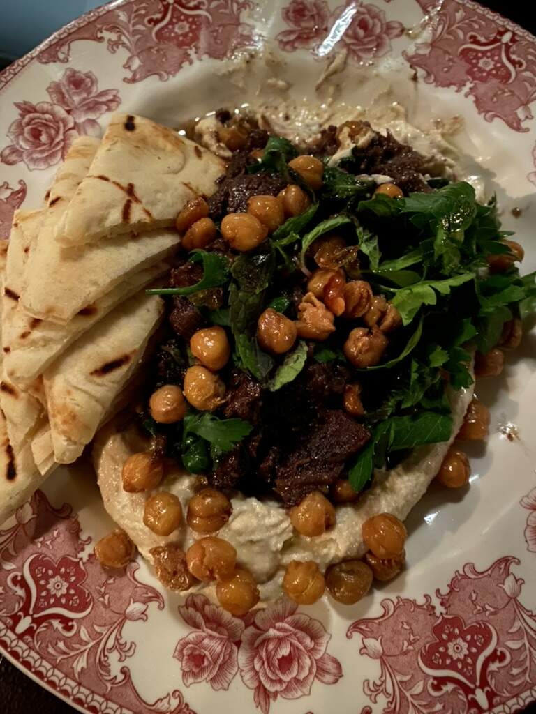 Rather a lot of nonsense happening at work and in my personal life (is it a full moon?). So, delivery tonight from a trusted Mediterranean place - falafel “with everything” (whole bag of thin pita, 2 kinds of pickles, tomatoes, lettuce, tahini sauce) and an order of baba ganoush. Copious amounts of adult beverage. Leftovers of all for tomorrow depending on how the day goes. Discovered the cat likes pita and falafel.