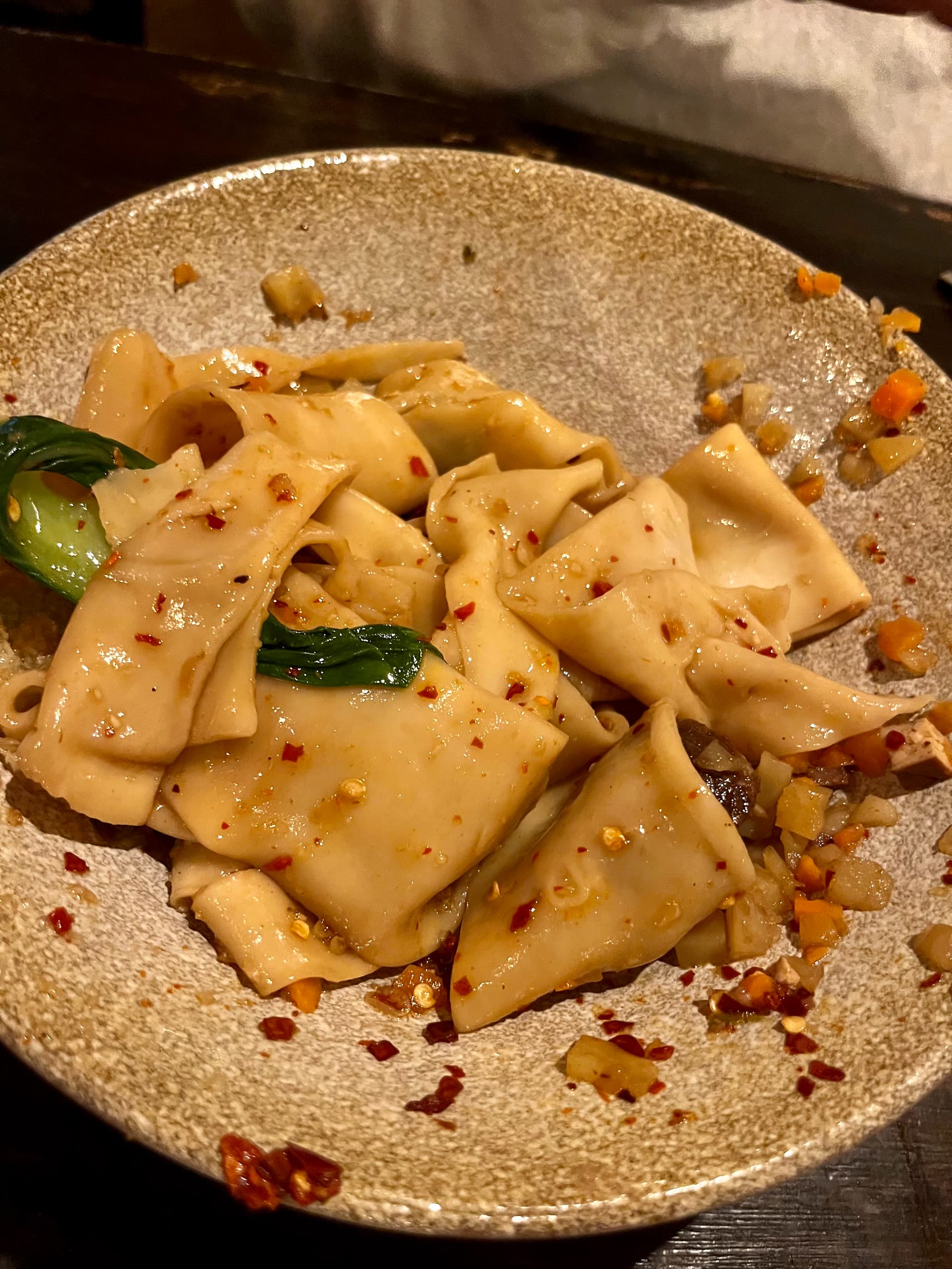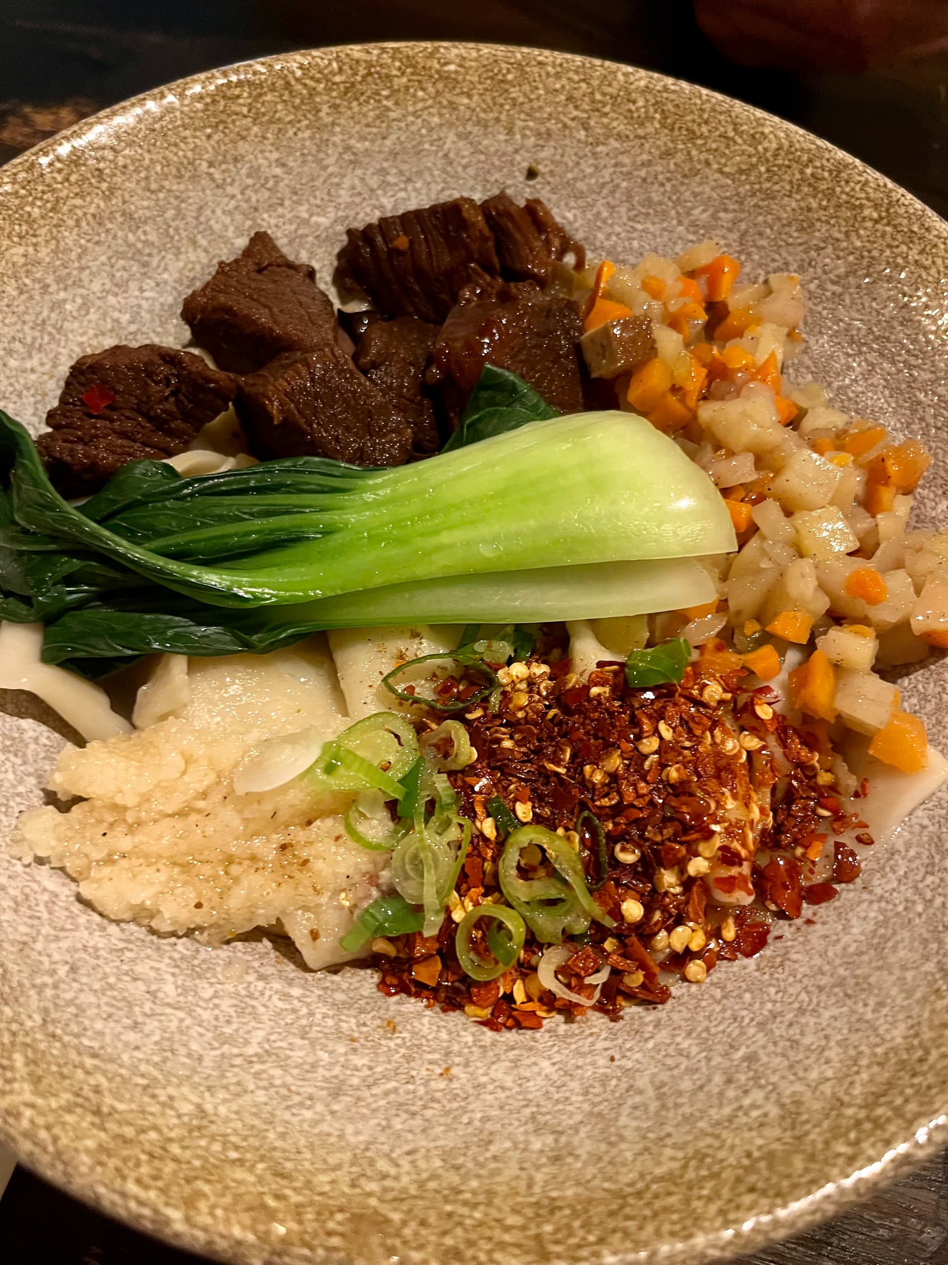 my PIC the flat, pappardelle like noodles with beef stew and a brunoise of carrots & onion. They didn’t skimp on either garlic or chili ![]()
