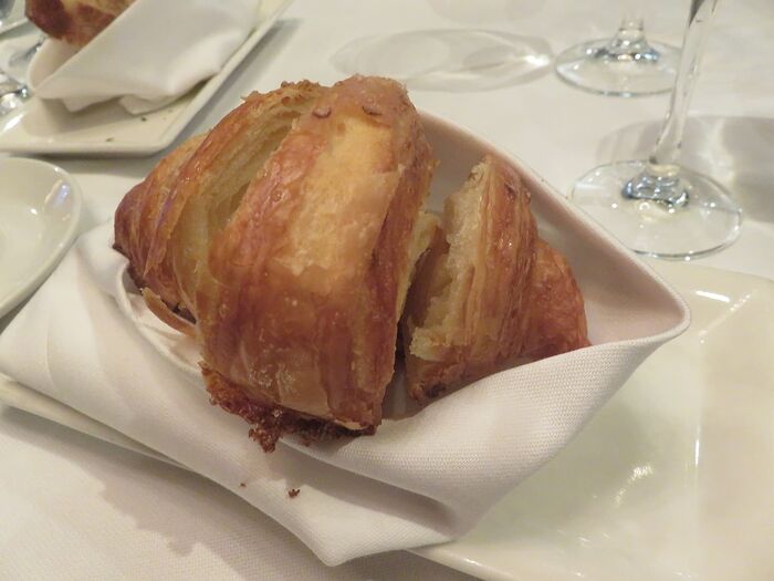 Visually, the meal composition adopted a beautiful and eye-pleasing ‘ Pastel ‘ theme. Main ingredients were expertly cooked and executed, accompanied by some very creative and intriguing supporting condiments and tasty sauces. The tender, nicely charred Octopus, the seared Foie Gras and crispy Sweetbread plus the tender, sweet, perfectly seared and gloriously rare interior pieces of Venison were true thumbs-up standouts. During the course of our dinner, the chef also brought out a couple of really enjoyable complimentary surprises…… .a freshly baked, hot, crispy, flaky, fluffy, light, ultra-buttery Croissant and a couple of piping hot ‘20th anniversary‘ Molten Chocolate center Beignets. The former, so good, it can easily rub shoulders with some of Paris’ best! The latter, tough to beat even in New Orleans!!