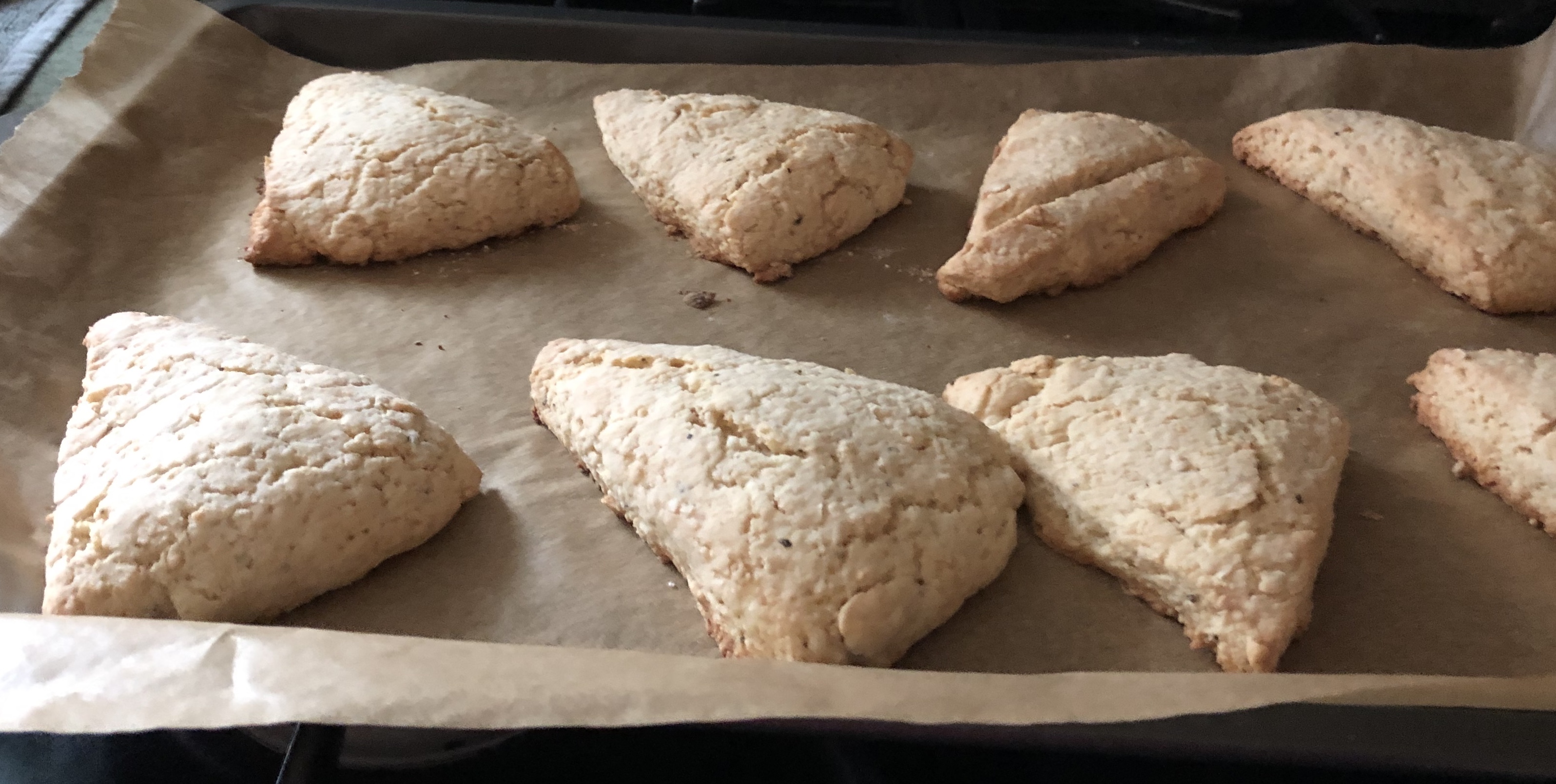 Another batch of lemon basil scones. I found a commercial jar of rhubarb jam in the back pantry that I plan to enjoy with them.