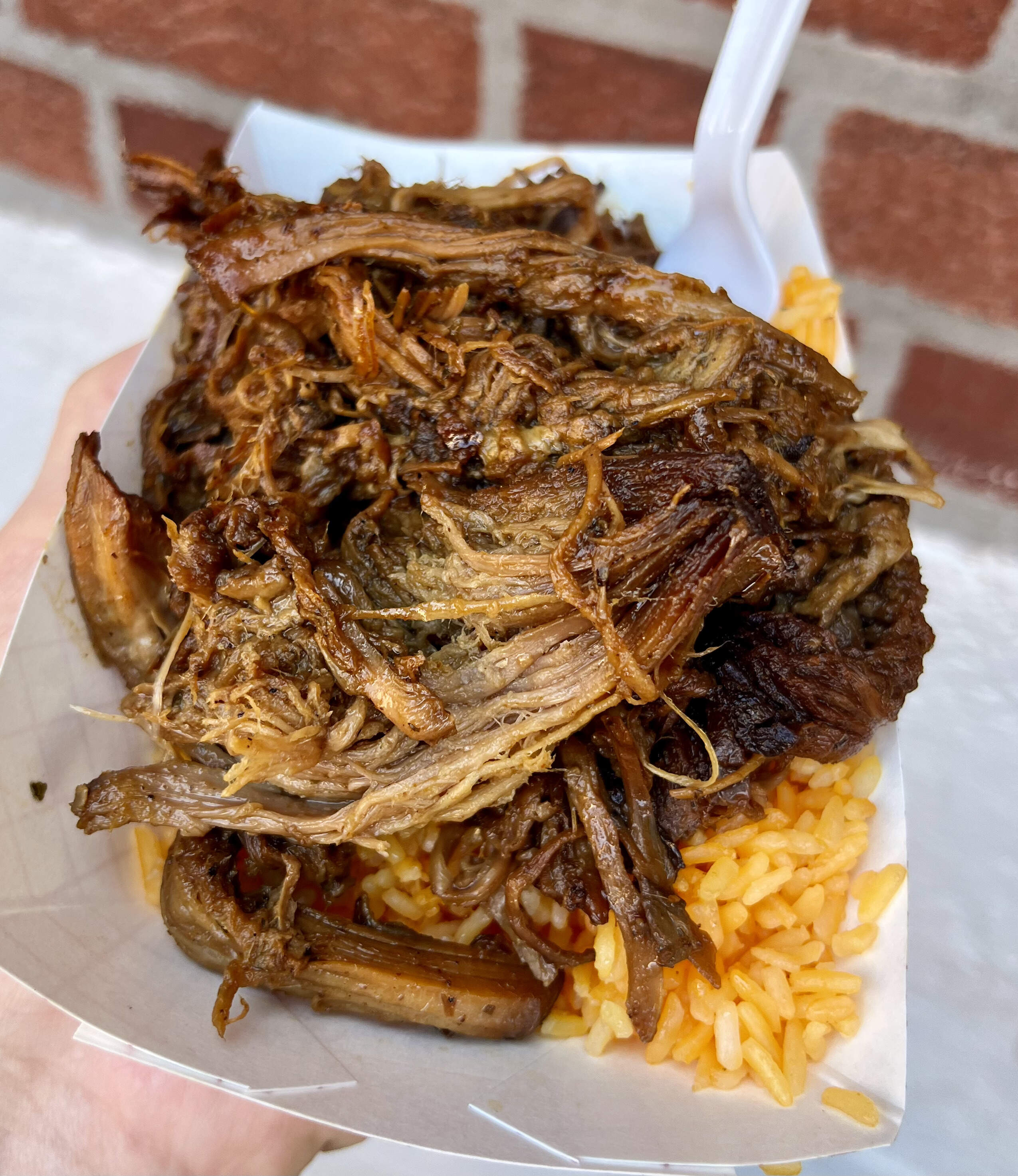 Pernil over rice at today’s 5th annual Latin Festival. Great crowd, so many different nations representing in our little town
