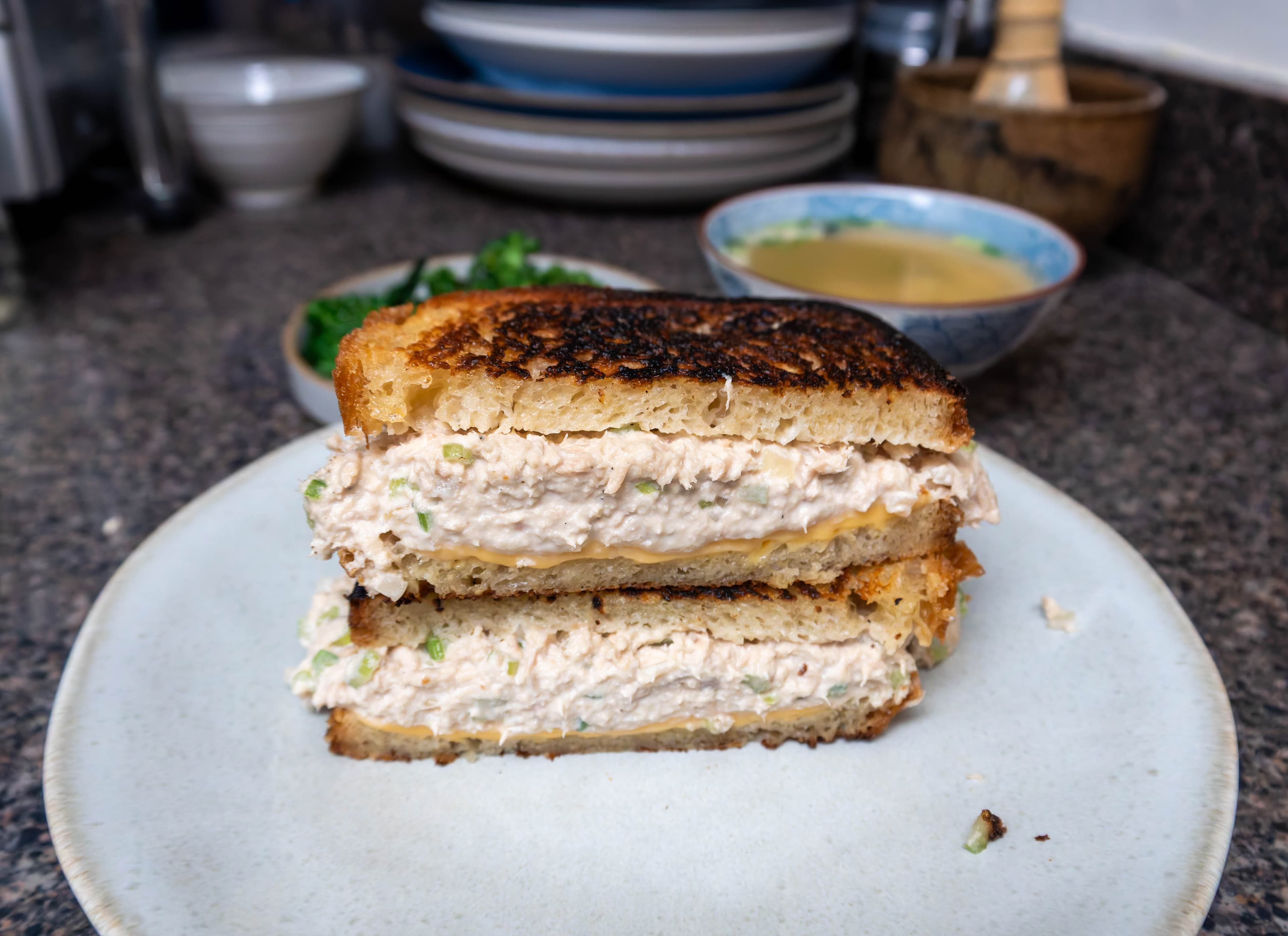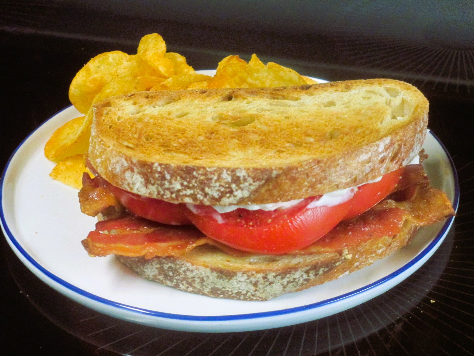A BLT in this house is a rarity, but I found myself with some good thick cut bacon, lovely end of summer tomatoes, lettuce, and a fresh boule of Easy Tiger sourdough. Came time to put it all together, but…yikes. No Duke’s mayonnaise! The IB to the rescue. An egg yolk, the juice of a small lemon, a scant tsp. of Roland Dijon, a hearty pinch of Diamond Crystal, a cup or so of peanut oil, and ten seconds later it was ready to spread. Mmmmm.