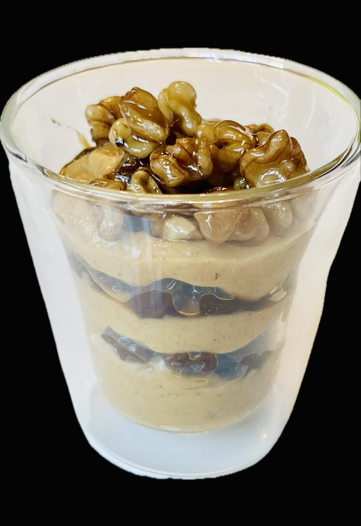 Pumpkin crème, rum raisins and maple glazed walnuts.
