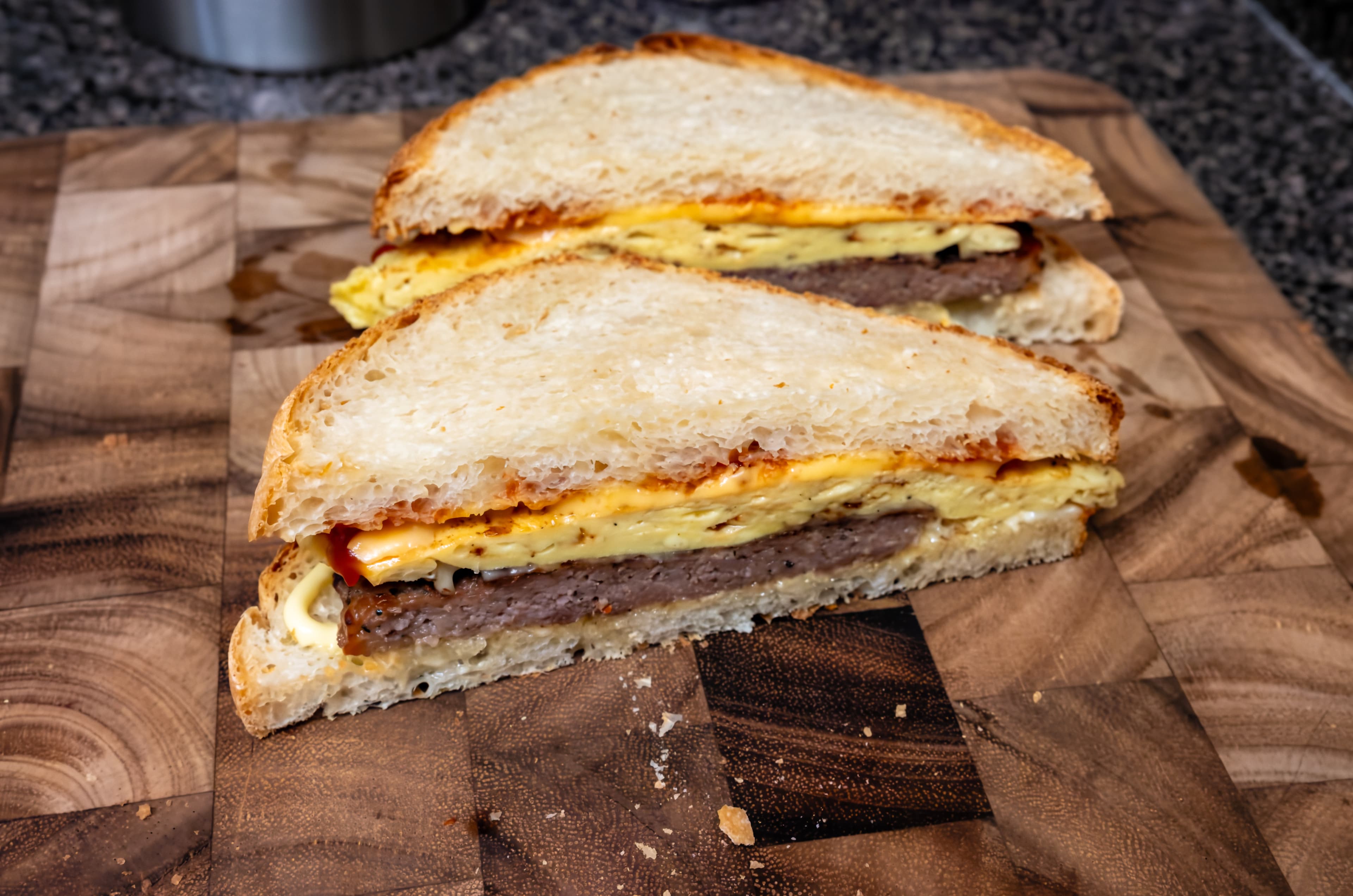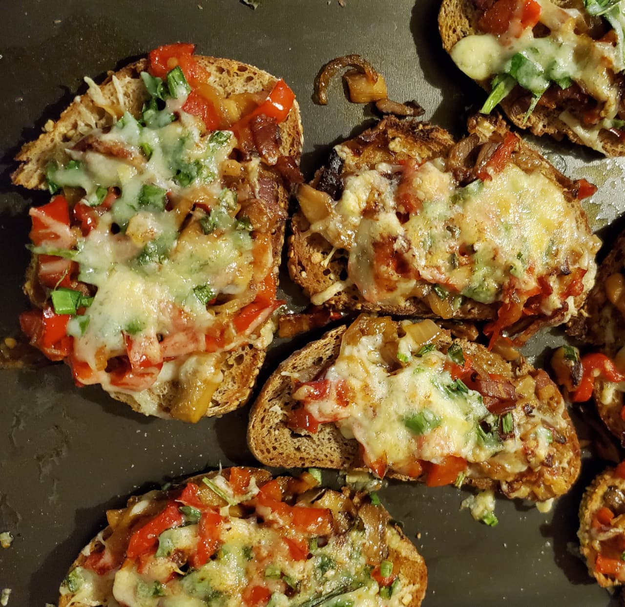 Leftovers here as well. Our friend’s delectable deviled eggses, smashed up a top a toasted slice of Aldi’s bistro bread, a lil local cream cheese, shredded icebørg, and a few scallions for bite, kronch and FLAIR ![]()