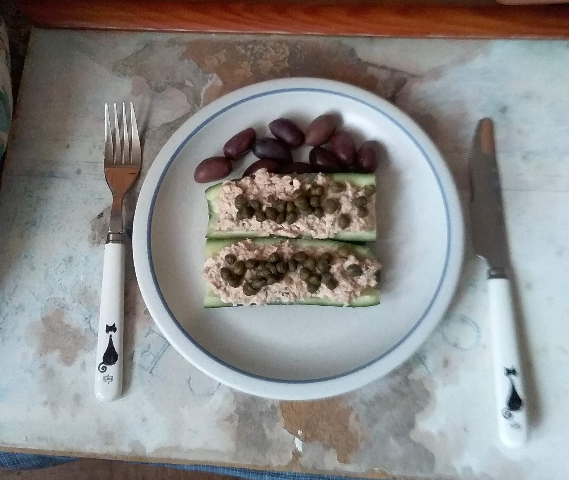 In keeping with the fish theme, I had a couple of salmon boats garnished with capers. Kalamata olives on the side.