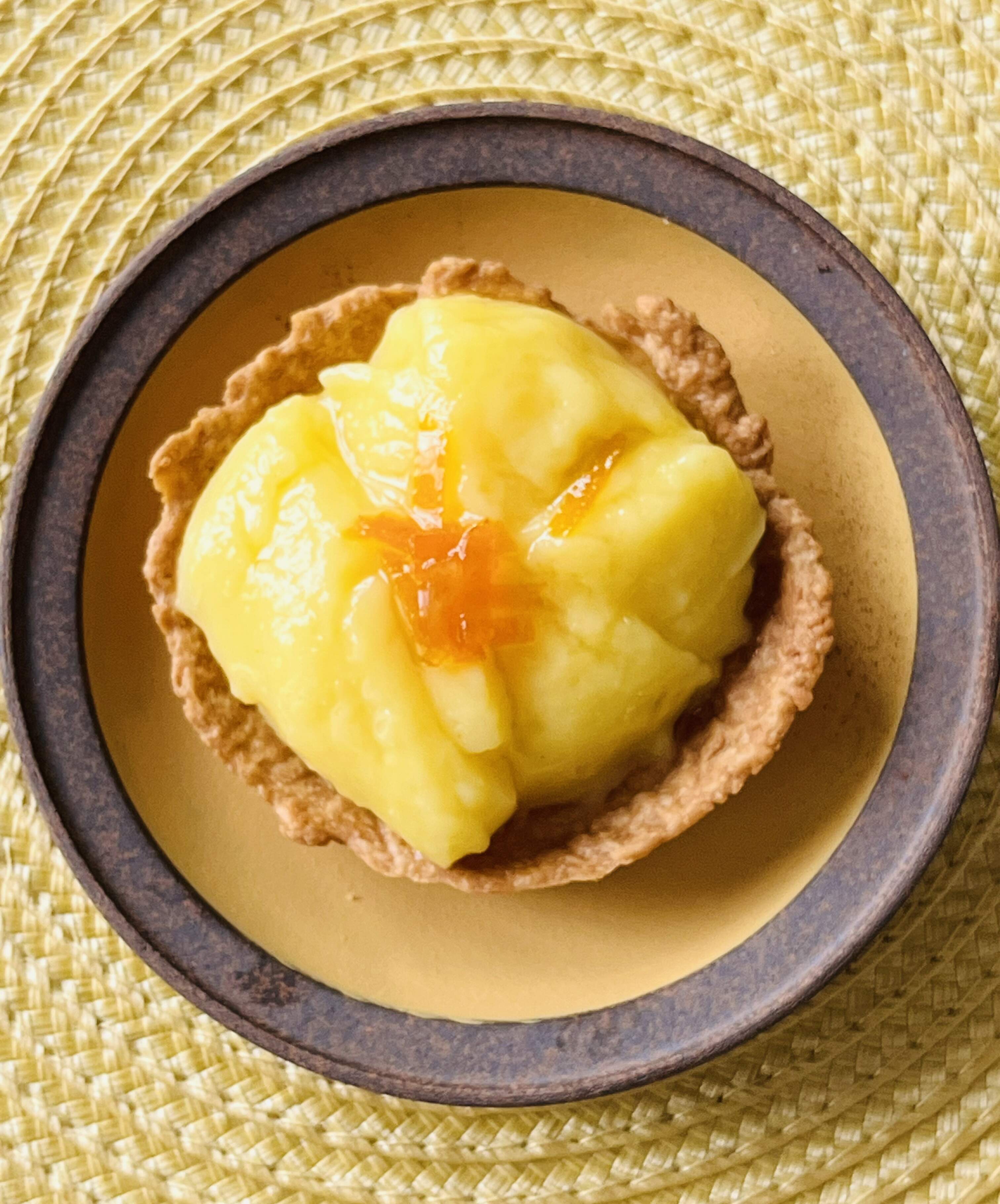 Fresh orange pastry cream, candied zest , pastry scrap dough.
