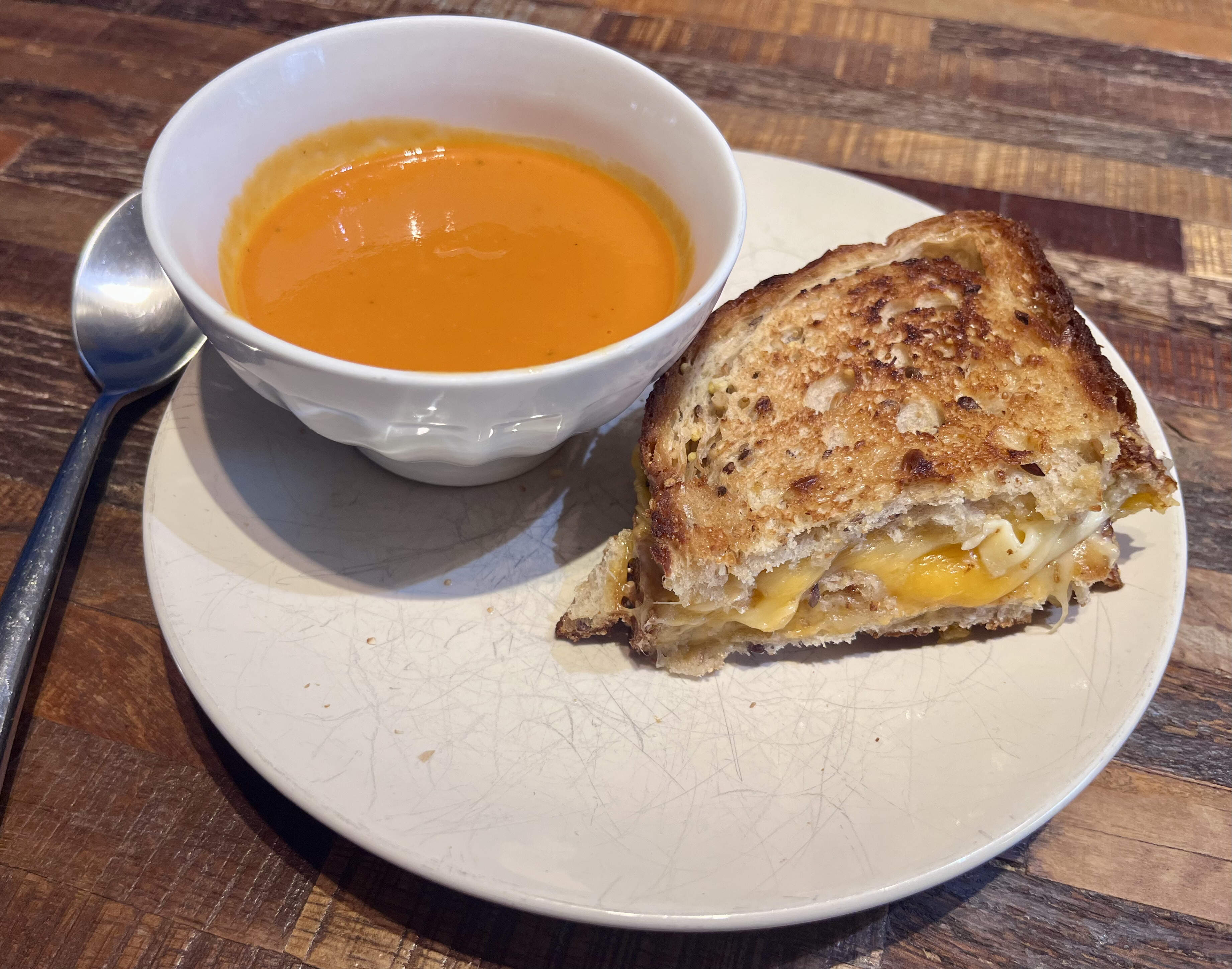 Post-brain scan comfort lunch: tomato soup and grilled cheese.