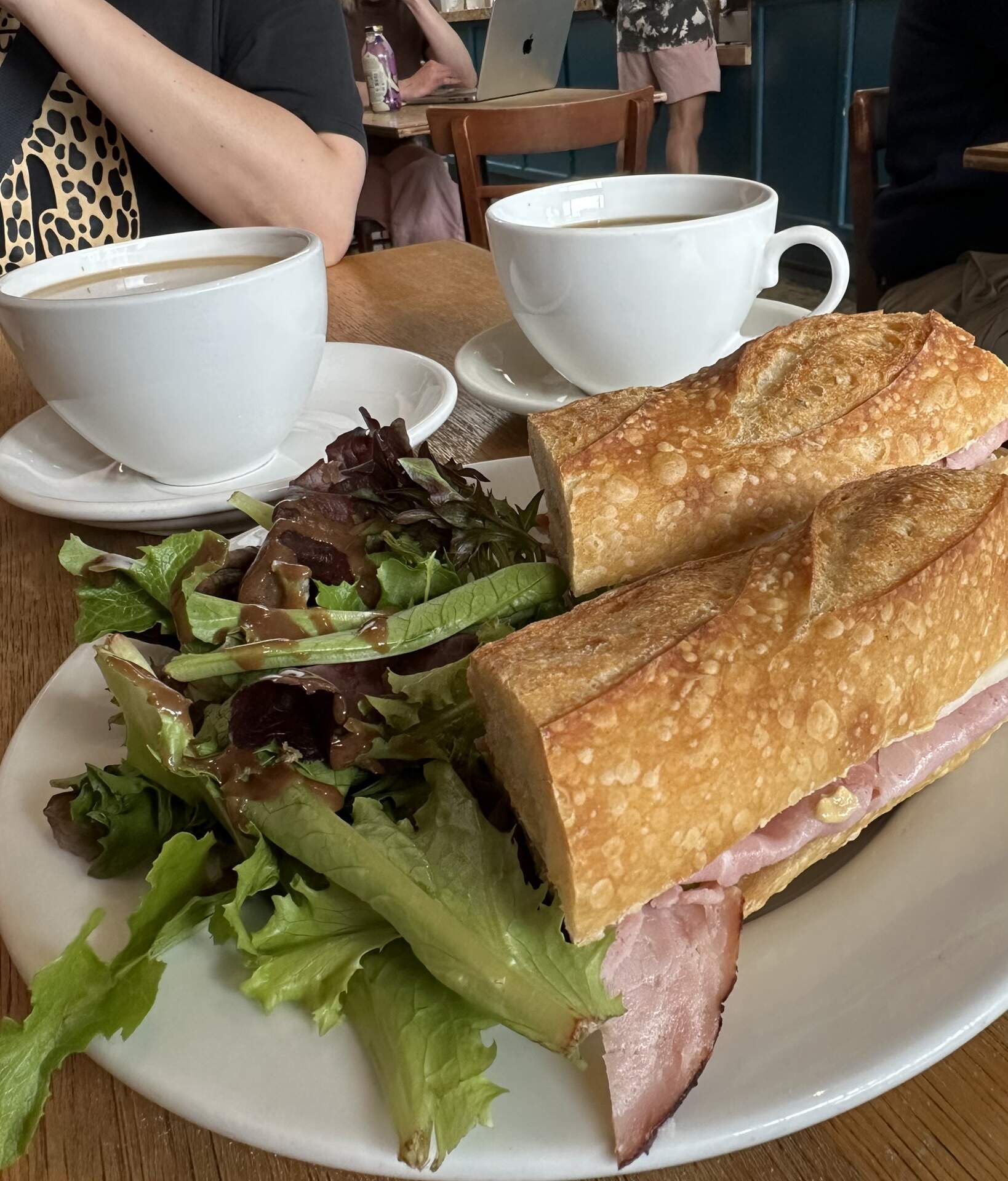 Ham & Cheese on House Baguette. Bits of Gherkin and the Mustard tied it all together. Salad a touch tired.