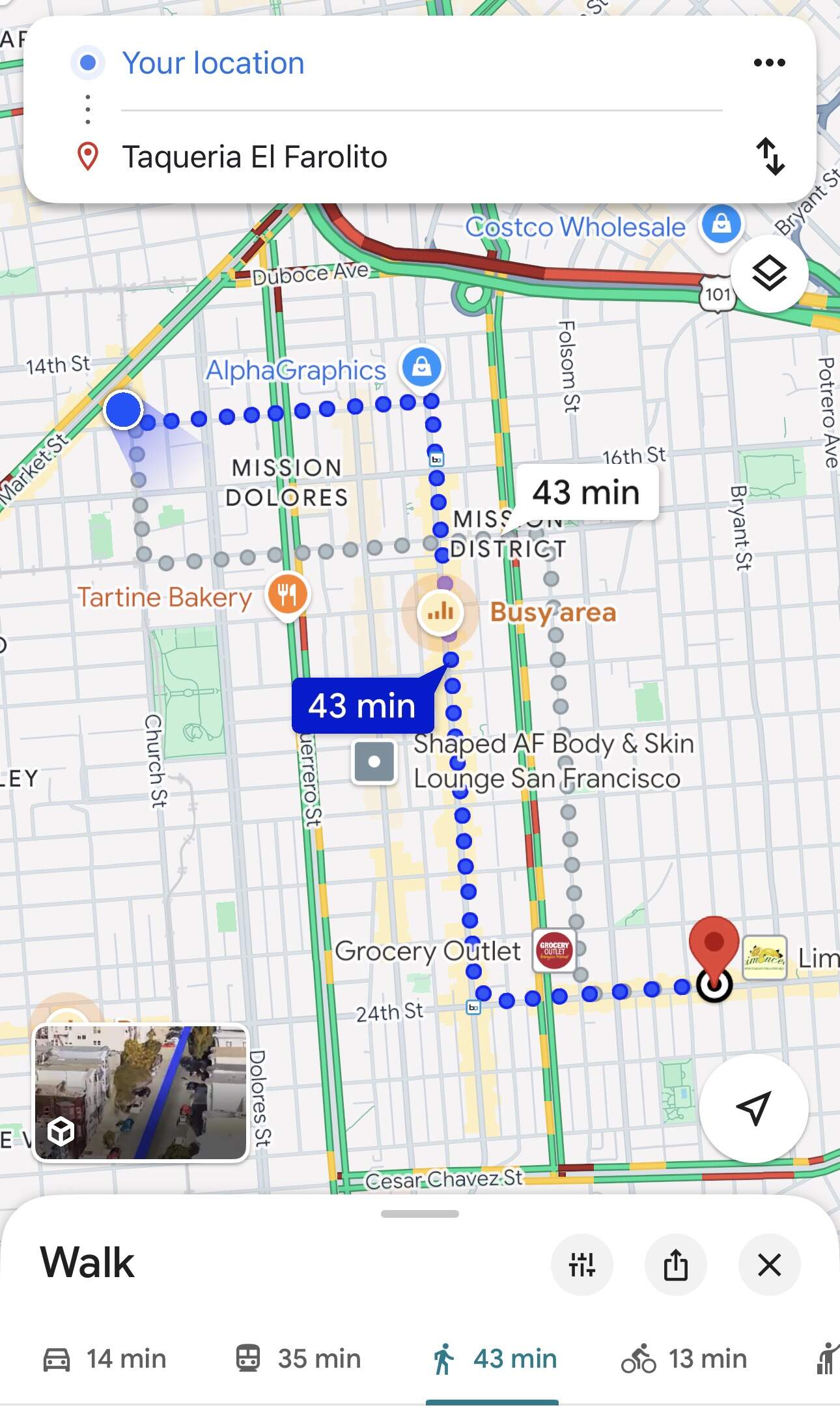 Beautiful afternoon for a 43 minute walk to El Farolito in the Mission.