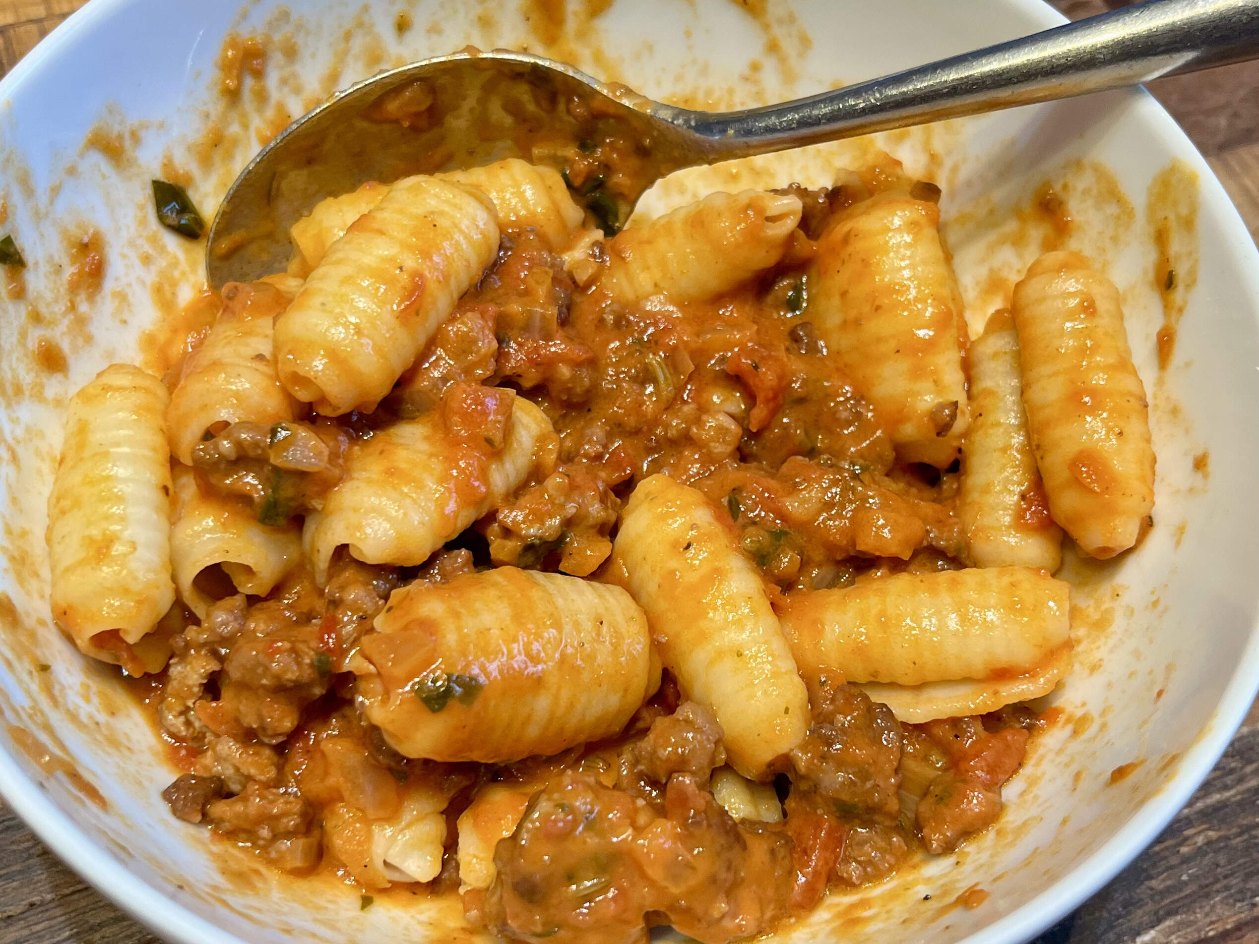 A hot mess of luscious leftovers of bodacious barilotti with that mahvelous meat-a sauce-a